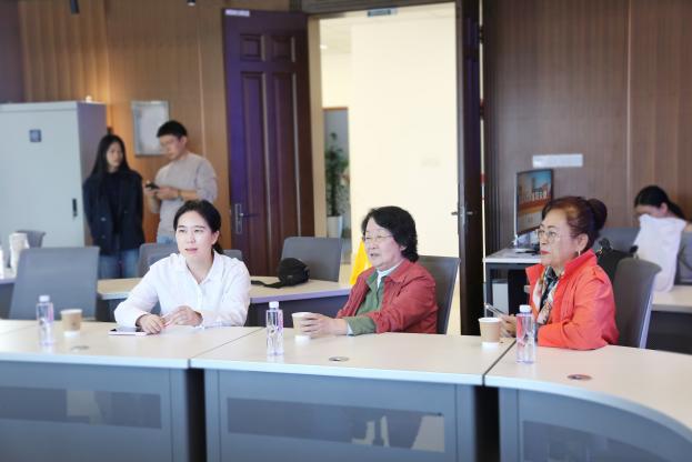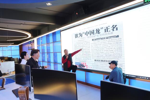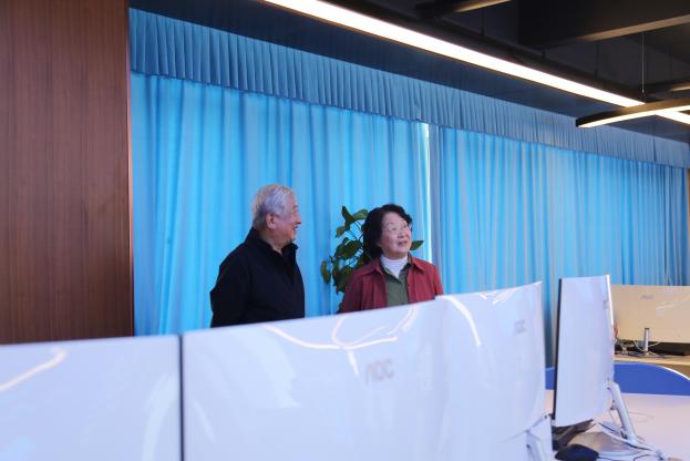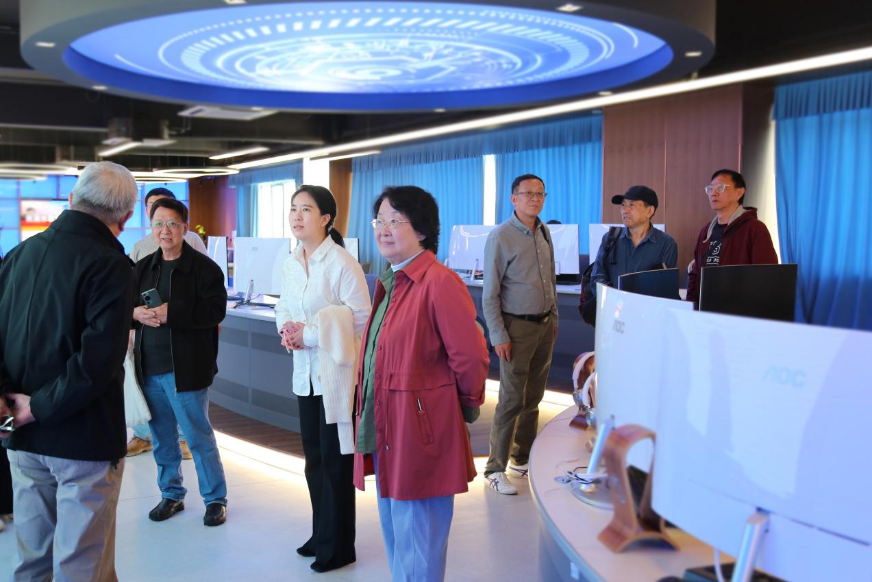 退休教师们首先来到传播学院智慧与创意融媒体教学示范中心。在充满未来感的展厅中,面对生成式人工智能技术应用等现代化教学设备与场景,老教师们不时驻足凝视、俯身询问。从智能交互到虚实融合,从传统教具到数字化设备,通过沉浸式体验,老教师们真切感受到技术赋能给传媒教育带来的深刻变革与蓬勃活力。