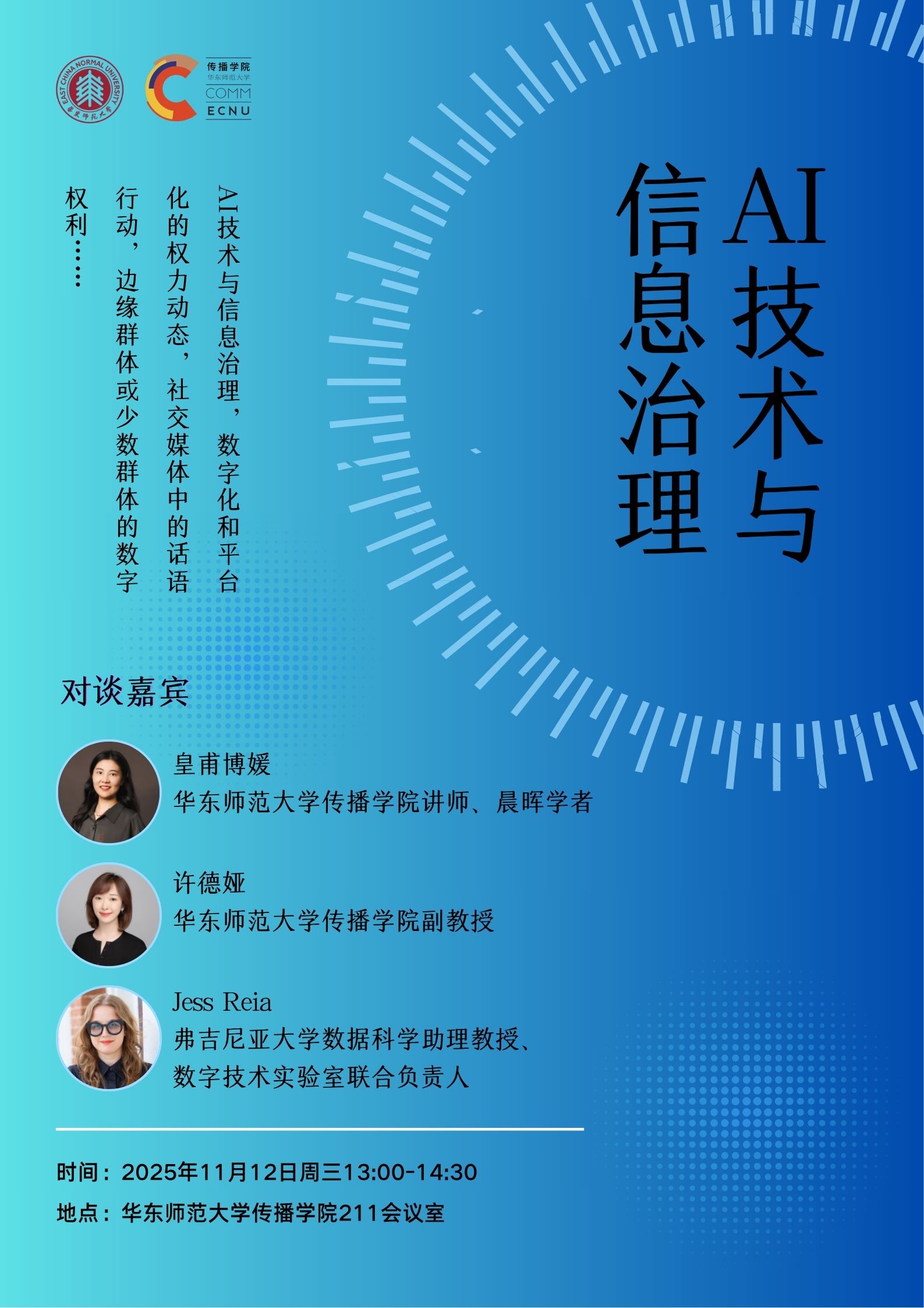 AI技术与信息治理,数字化和平台化的权力动态,社交媒体中的话语行动,边缘群体或少数群体的数字权利……