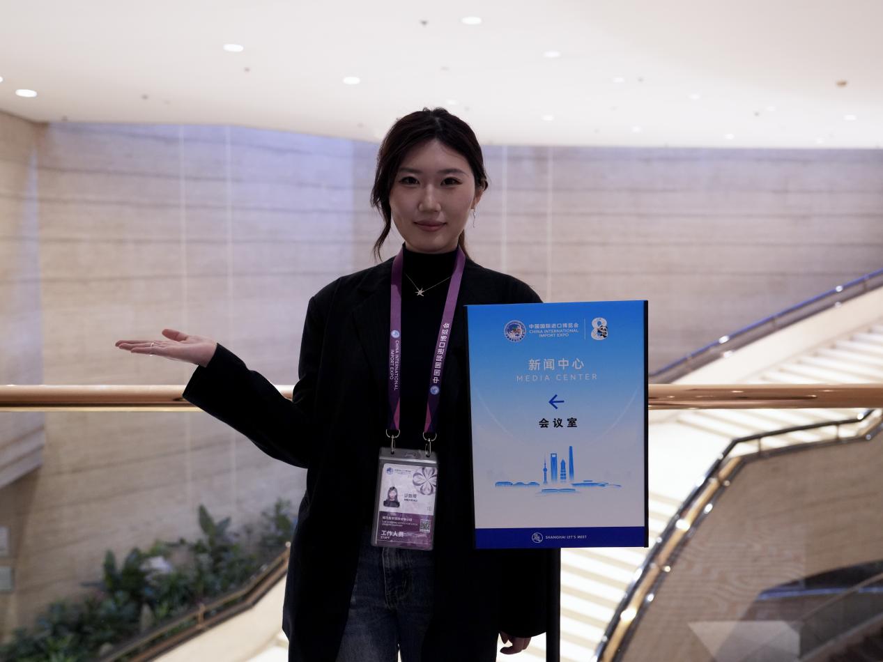 自本科在上海求学以来,我一直十分向往能够成为一名进博会“小叶子”,十分有幸能够在今年圆梦。连日来,我努力将课堂所学的传播理论转化为实践能力,以专业素养服务新闻中心的运营工作,用最好的精神面貌迎接来自世界各地的媒体朋友。亲身参与其中,更感这份经历的珍贵与意义。
