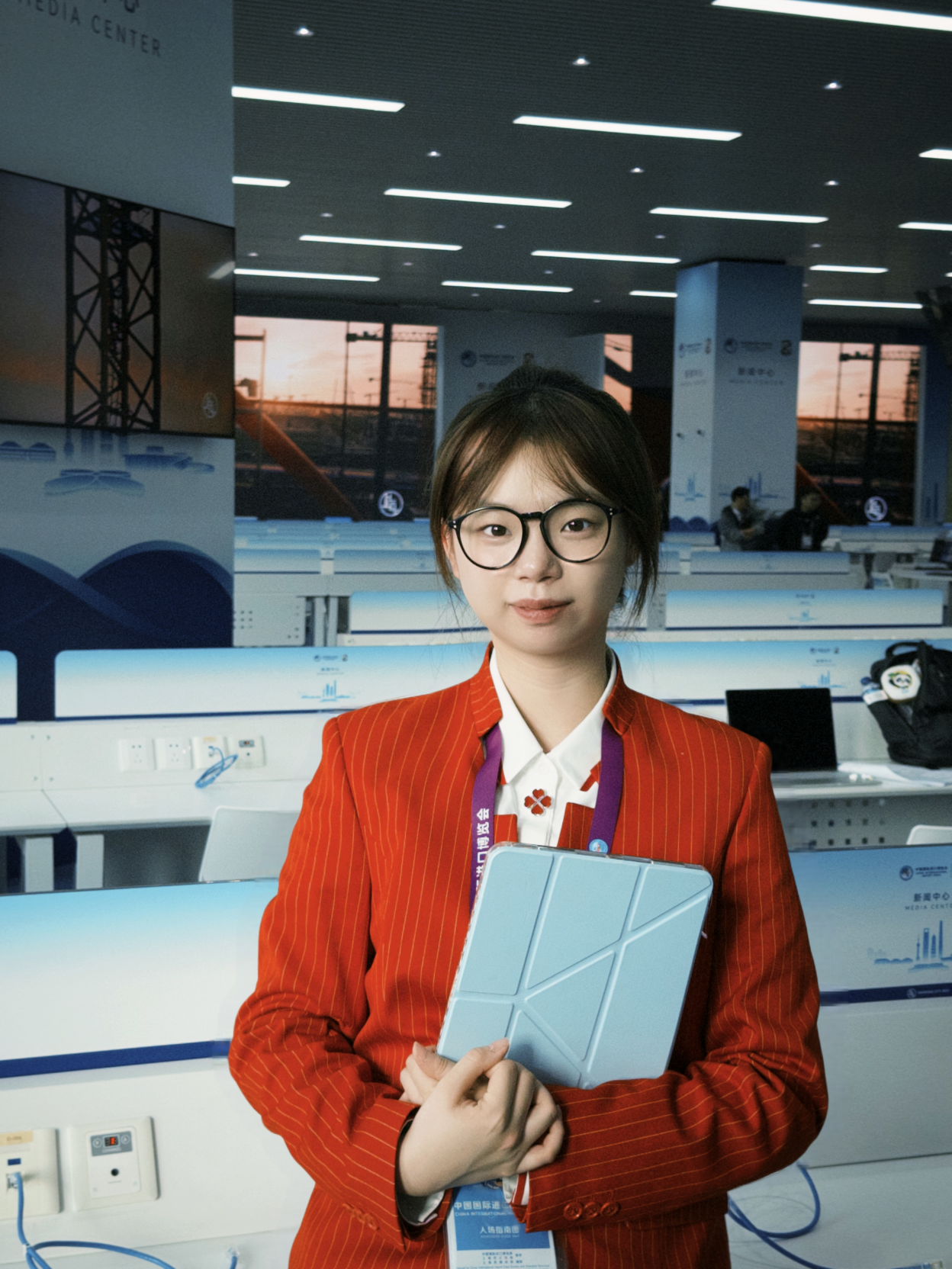 能够以“小叶子”的身份参与第八届进博会,我倍感荣幸。此刻站在岗位上,我不仅提升了英语能力和心理素质,更深刻理解了新闻中心作为信息枢纽和中国名片的重要性。作为新时代青年,我正以最饱满的状态投入每一天的工作,让世界透过新闻中心的窗口,看见中国的活力与包容,感受新时代青年的担当与热情!