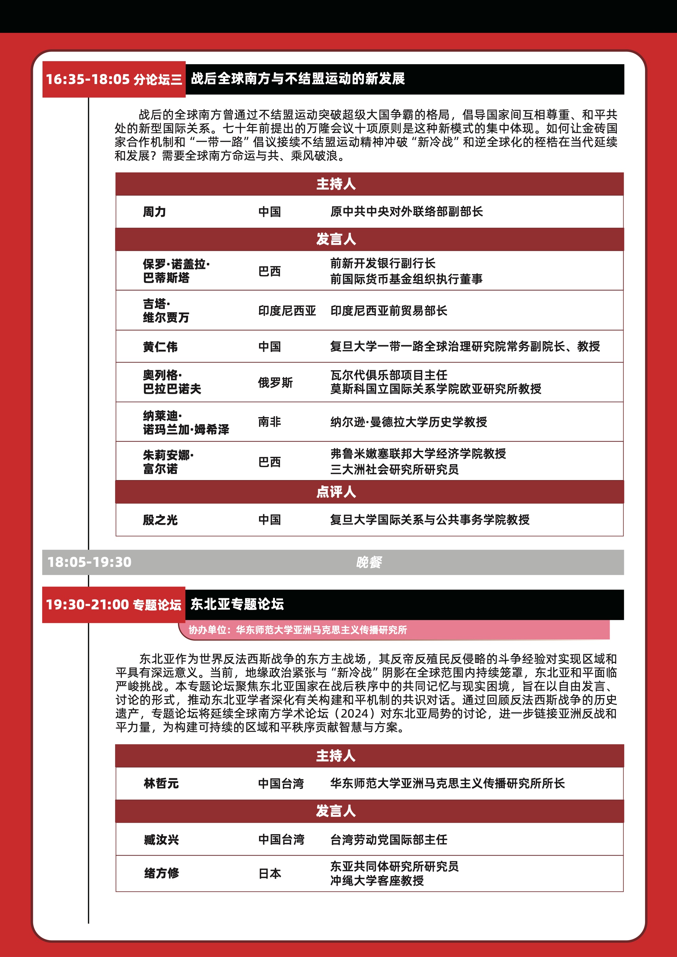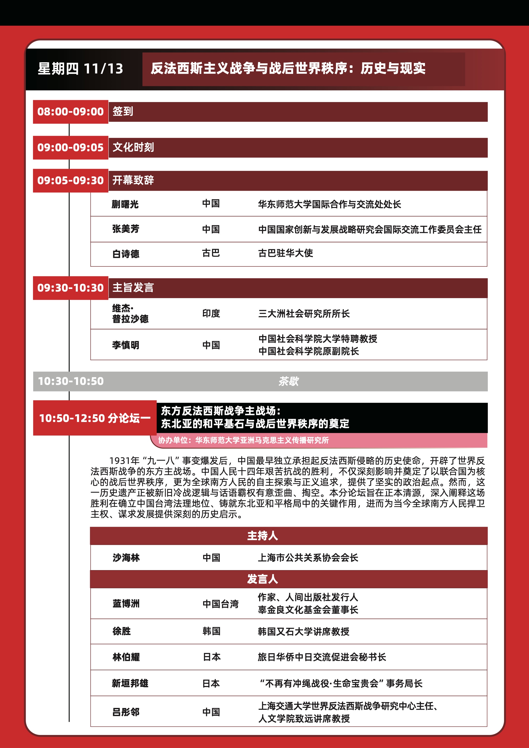 1931年“九一八”事变爆发后,中国最早独立承担起反法西斯侵略的历史使命,开辟了世界反法西斯战争的东方主战场。中国人民十四年来艰苦抗战的胜利,不仅深刻影响并奠定了以联合国为核心的战后世界秩序,更为全球南方人民的自主探索与正义追求,提供了坚实的政治起点。然而,这一历史遗产正被新旧冷战逻辑与话语霸权有意歪曲、掏空。本分论坛旨在正本清源,深入阐释这场胜利在确立中国台湾法理地位、铸就东北亚和平格局中的关键作用,进而为当今全球南方人民捍卫主权、谋求发展提供深刻的历史启示。