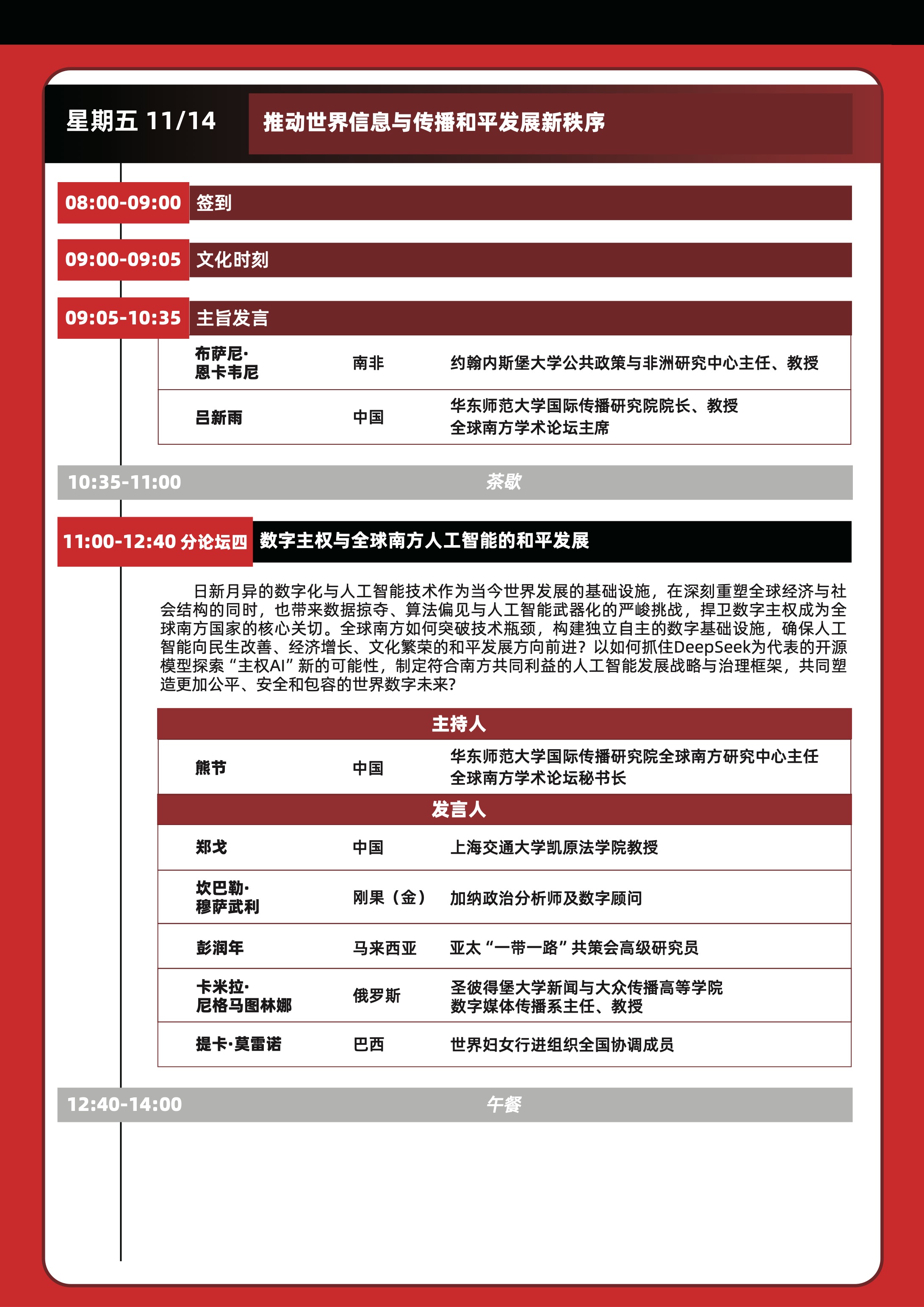 日新月异的数字化与人工智能技术作为当今世界发展的基础设施,在深刻重塑全球经济与社会结构的同时,也带来数据掠夺、算法偏见与人工智能武器化的严峻挑战,捍卫数字主权成为全球南方国家的核心关切。全球南方如何突破技术瓶颈,构建独立自主的数字基础设施,确保人工智能向民生改善、经济增长、文化繁荣的和平发展方向前进?以如何抓住DeepSeek为代表的开源模型探索“主权AI”新的可能性,制定符合南方共同利益的人工智能发展战略与治理框架,共同塑造更加公平、安全和包容的世界数字未来?