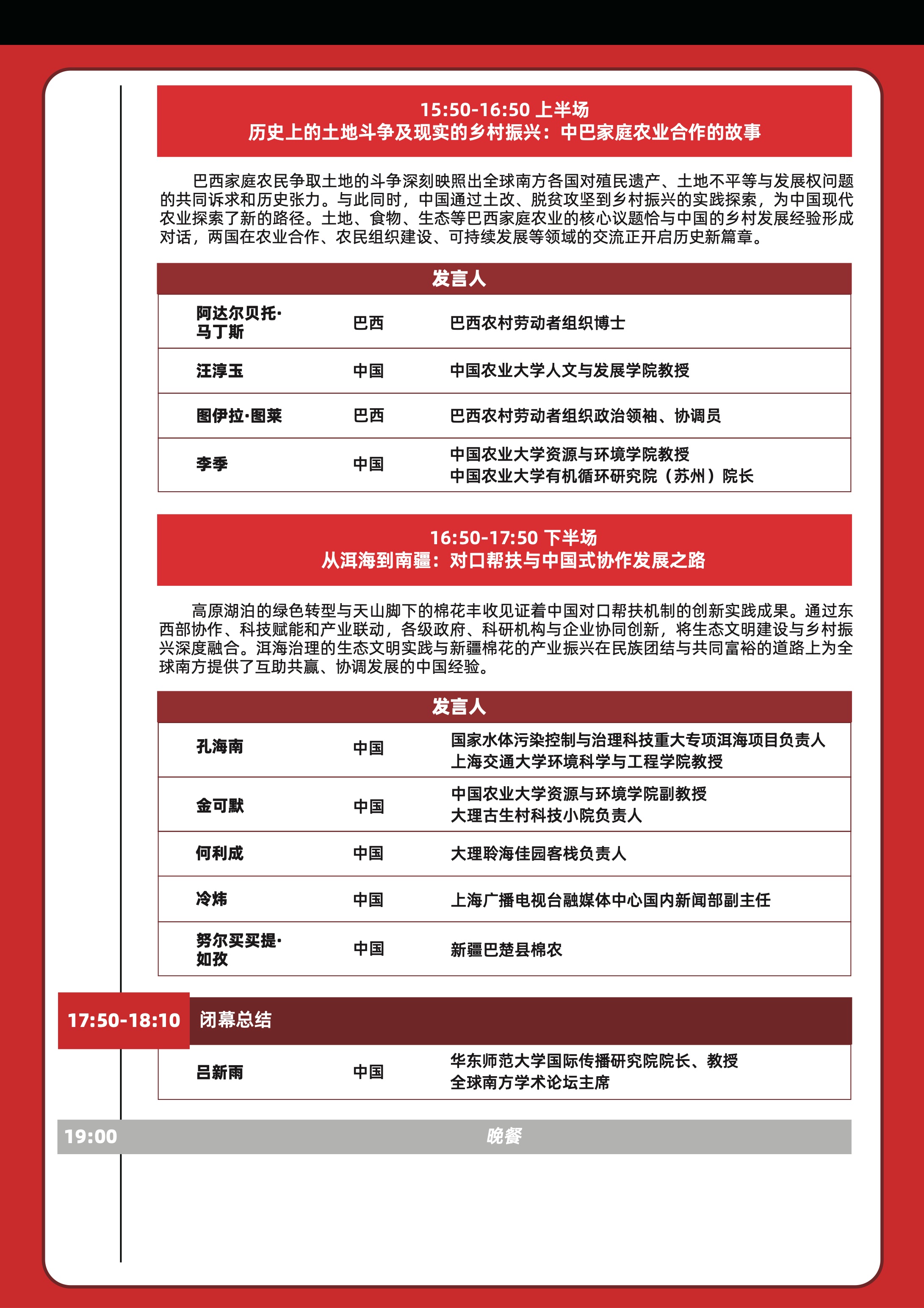 实现乡村现代化发展是全球南方的共同愿景。本场聚焦全球南方国家共同面临的“三农”(农业、农村、农民)问题破解之道,通过分享全球南方乡村发展的各自经验,探讨全球南方现代化和平发展的互助与互鉴之路。