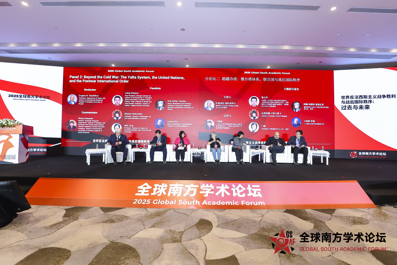 分论坛二“超越冷战:雅尔塔体系、联合国与战后国际秩序” 探讨雅尔塔体系与联合国机制在当代国际关系中的危机与重构,主张以反法西斯战争胜利成果为基础,坚持联合国宪章原则,推动多极、平等、公正的世界新秩序。