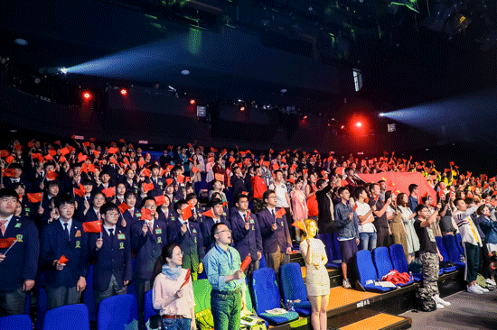 在颁奖典礼上,当颁奖嘉宾为所有选手颁奖之后,所有选手沉浸在获奖的喜悦当中,大家纷纷拿出手机拍照留影,这时一段熟悉歌声在演播厅里响起,“五星红旗迎风飘扬,胜利歌声多么响亮……”