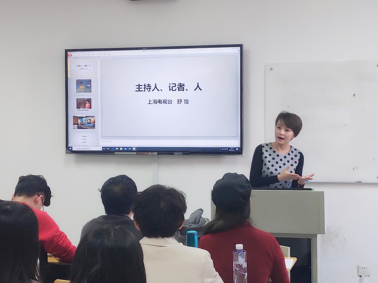11月3日上午10:00,上海广播电视台融媒体中心、《新闻坊》节目主持人舒怡老师应邀来到华东师范大学传播学院播音与主持艺术专业的课堂。结合丰富而详实的主持案例,舒怡老师与播音与主持艺术专业的同学们进行了深入而细致的交流,共同探讨一名优秀主持人拥有的基本要素。本次讲座由传播学院副院长陈虹教授主持。