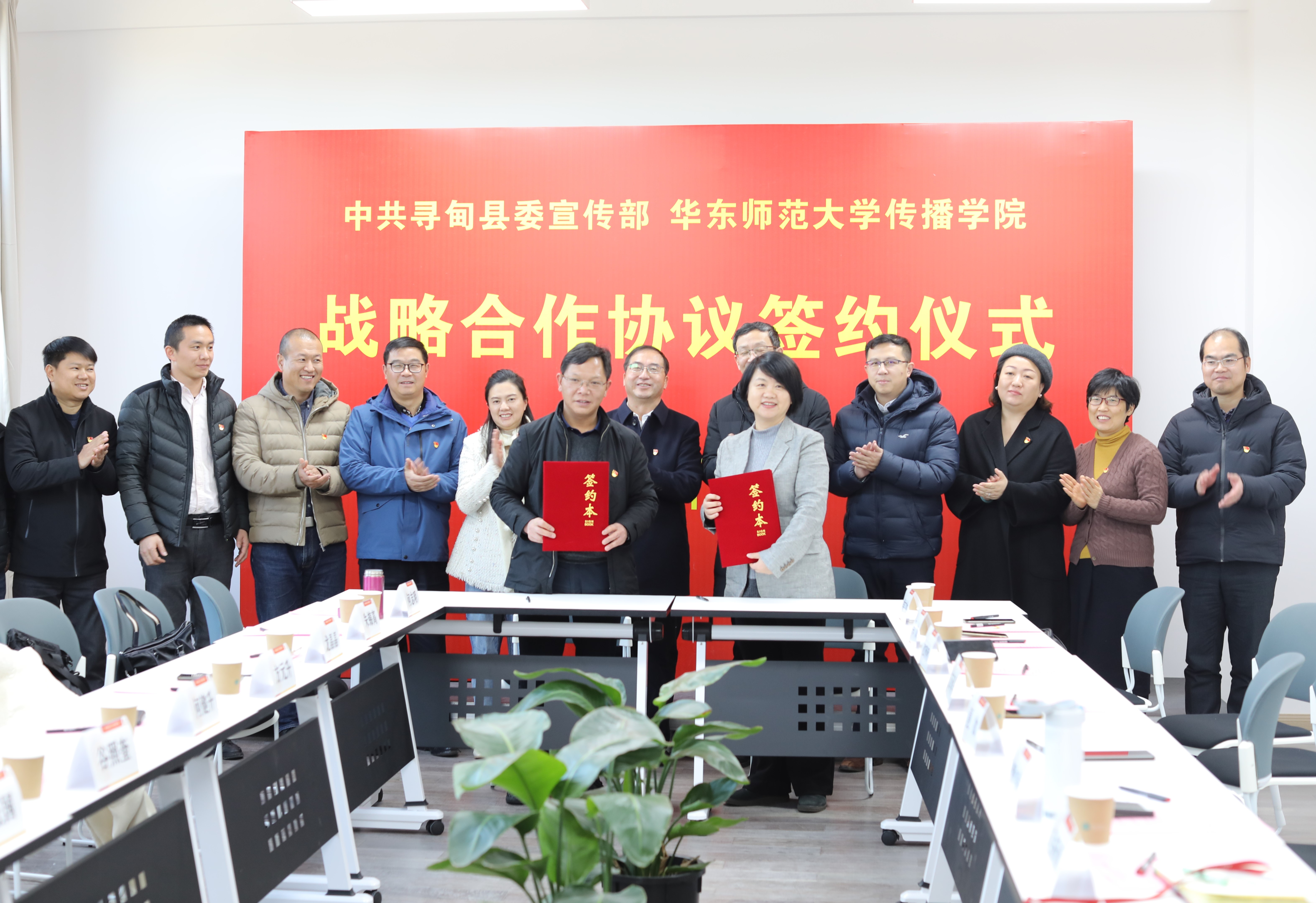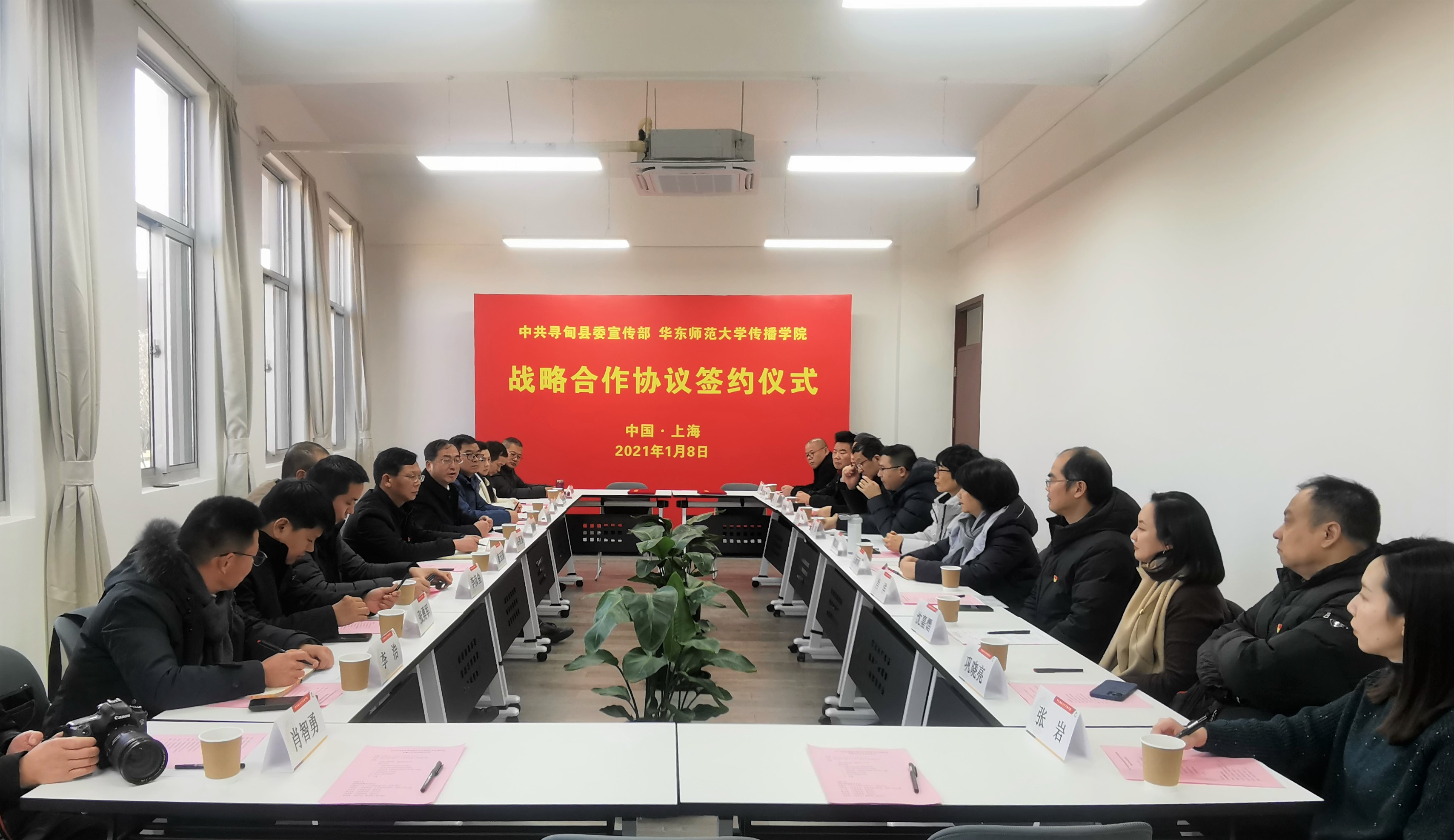 2021年1月8日下午,华东师范大学传播学院与中共寻甸回族彝族自治县县委宣传部战略合作签约仪式在华东师范大学传播学院101会议室举行。