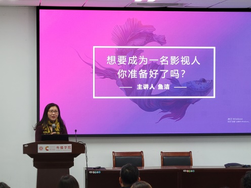 鱼总作为广播电视编导专业前身影视教育专业的首届毕业生,为学弟学妹们量身定制了以“影视圈生存法则”为核心的讲座内容。大学姐首先以“影视圈是个什么圈?”向在座的校友们互动发问,同学们有的回答是“名利圈”、有的认为是“明星圈”,而身处其中的鱼总则认为影视圈其实只是普通的工作场所,并没有太多的光环加持,要想在影视行业立足首先要明白“培根、铸魂、启智、润心”的使命,在充分理解影视圈的“敬业、专业、职业”后,“用心、用情、用功”的去面对影视工作。随后,鱼总以自己的亲身经历向在座的同学们分享招聘的经历、传授面试的要诀。她说,面试者要在保持自身“真”与“纯”的基础上对简历进行精准打造,同时对应聘单位与职业要进行充分的了解。同学们表示,讲座的内容对他们未来叩开影视圈的大门颇有益处。大学姐的点拨,让他们更加明确了影视人的使命和担当,认识到提升影视人的自我修养的必要性,并学习到了如何规避影视行业面试中的诸多误区。讲座尾声,鱼总还准备了惊喜的彩蛋,以热映电影《合法伴侣》的电影票作为小礼品赠予热情参与互动的同学们。