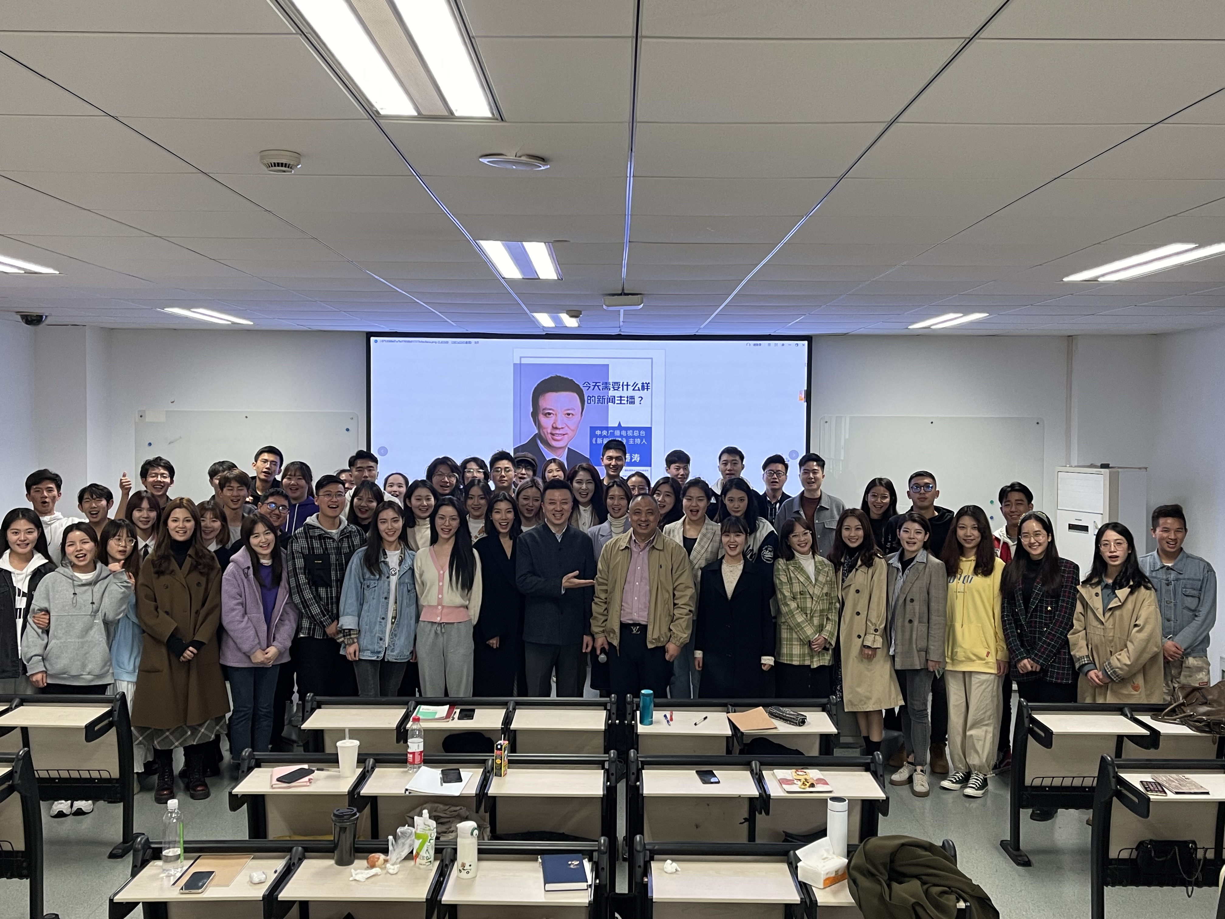 课堂上,潘涛老师讲述了自己成长的心路历程和从中获得的经验教训。针对当下融媒体传播环境,他提出了“四有新人”的概念,即要做四有新闻主持人:“有播报的激情、有沟通的渴望、有版面的意识、有主编的见地”。并结合在国庆70周年的天安门现场报道等多个大型报道节目创作过程,生动地讲述了新闻主播的创作技巧和创作心得。他鼓励同学们要不断努力学习,通过专业知识的积累和实践锻炼,逐渐找到自身的闪光点,形成属于自己的播音风格,成长为一名优秀的新闻工作者。