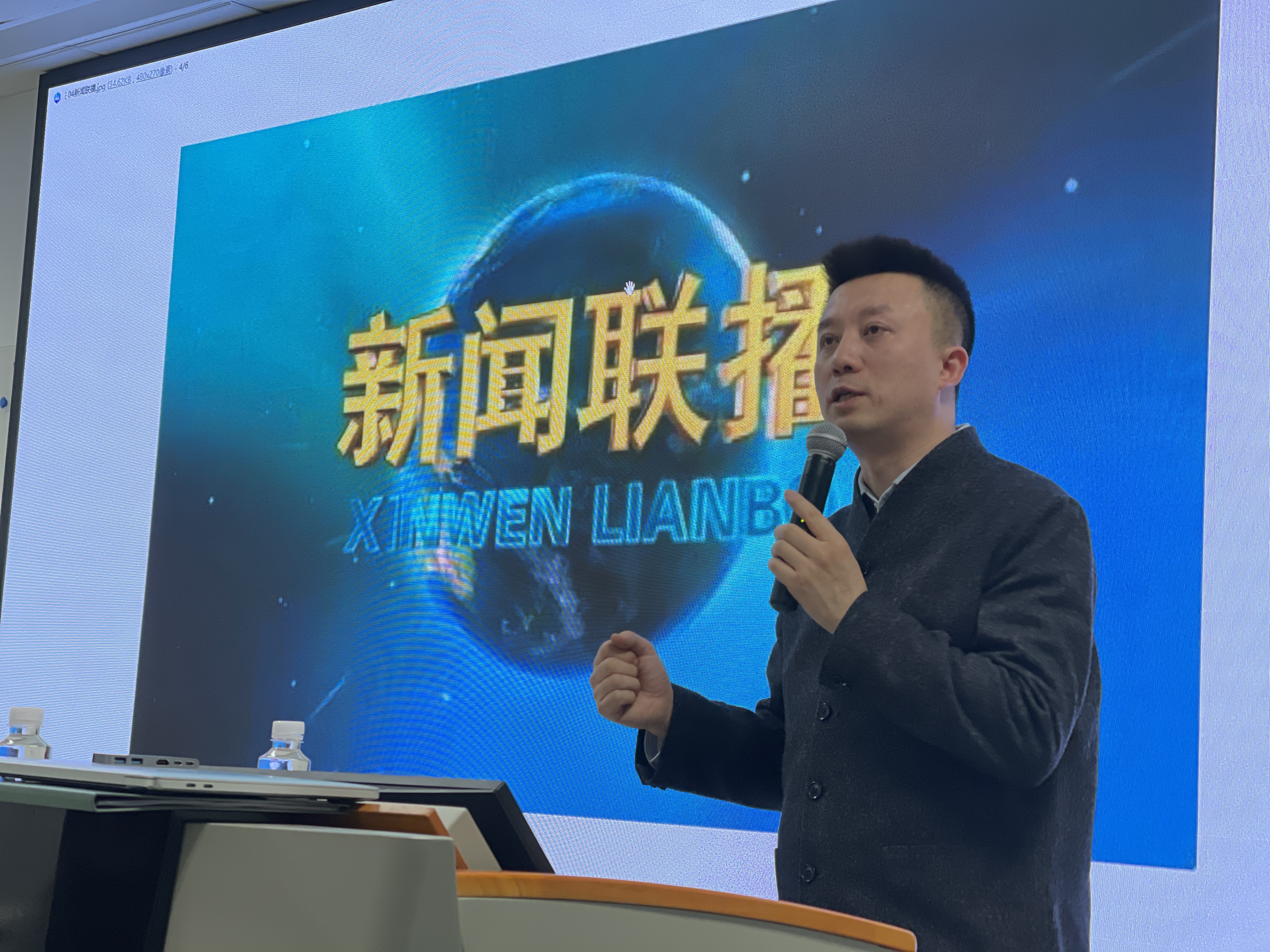 3月31日上午9:00,中央广播电视总台《新闻联播》节目主持人潘涛,应邀于来到华东师范大学传播学院409室,以《今天需要什么样的新闻主播》为题,与播音与主持艺术专业的同学们展开交流。潘涛具有丰富的从业经历,曾多次荣获“中国播音主持金话筒奖”等荣誉称号。自2020年9月10日起,潘涛担任中央广播电视总台《新闻联播》节目主持人,被全国观众熟知,喜爱,成为联播“新国脸”。