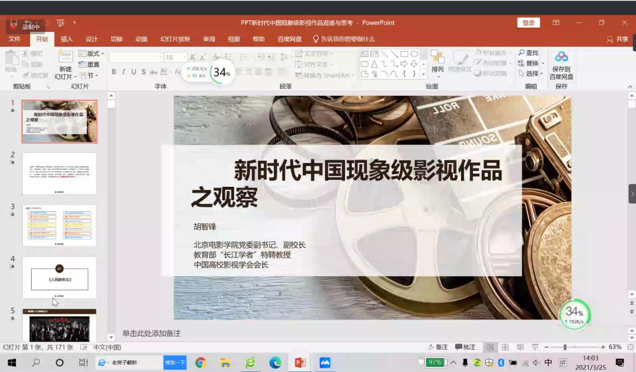 在讲座中,胡智锋教授以十四部影视作品为样本,评析了近几年来“现象级”中国影视作品的特征,并分别阐发了这些影视作品成功的深层原因。