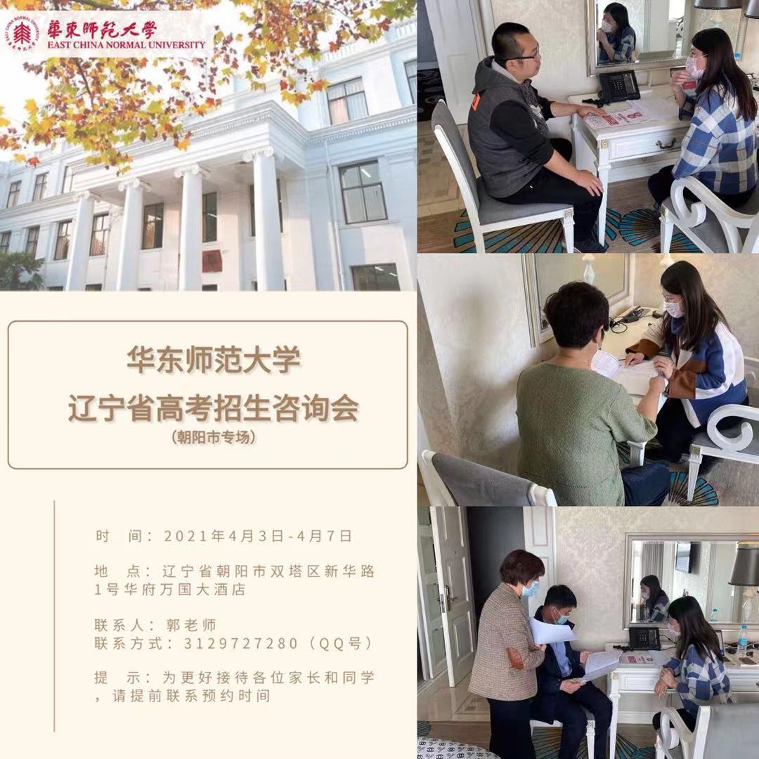 朝阳市位于辽宁省西部,历年高考人数位居辽宁省省内前三;朝阳市高分段考生生源优质,在2020年创下了包揽辽宁省理科前三名的佳绩。2021年4月3日-7日,传播学院副书记、副院长杜彬彬,华东师范大学辽宁省招生组成员郭子颀前往辽宁省朝阳市举行高考招生驻点宣传工作,此次招生组首次到访朝阳市开展招生宣传之行,赴朝阳市第一高级中学挂牌优质生源基地,面向实验班同学进行了我校2021年招生宣讲,为进一步与该市重点高中保持合作,与优质生源校建立联系奠定了良好基础。