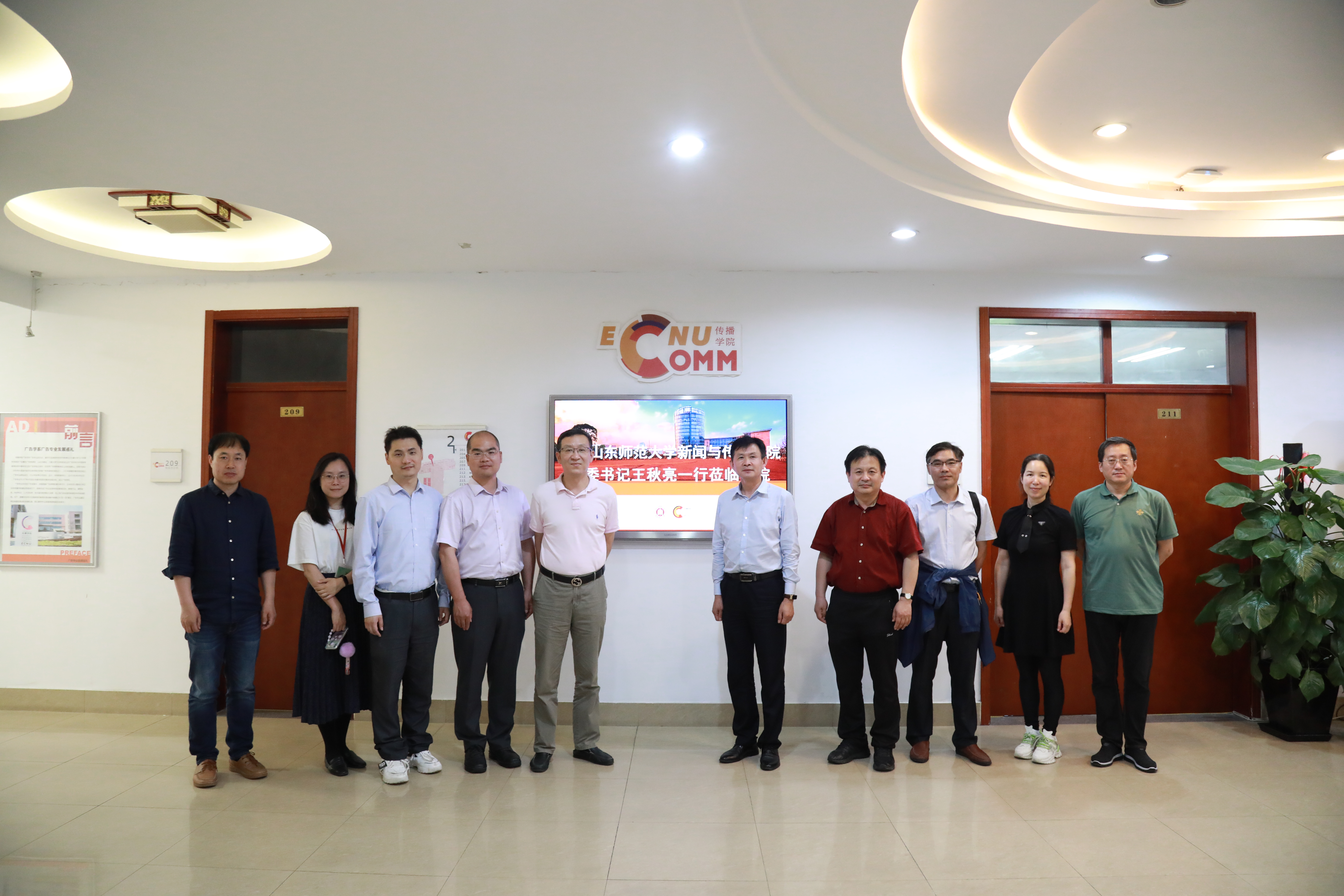5月26日上午,山东师范大学新闻与传媒学院党委书记王秋亮一行到访我院进行走访调研。来宾还包括山东师范大学社会科学处副处长刘兴波,新闻与传媒学院院长助理邢祥虎、实验中心主任崔新生、网络与新媒体系主任李大锦。我院党委书记方奇华、副院长陈虹、副院长肖洋、融媒体中心负责人徐正则、融媒体中心实验师杜婕及相关教师共同接待,并在学院211会议室进行了会谈。