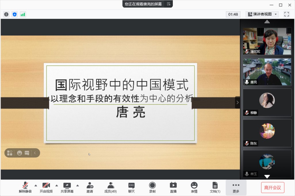 2021年5月26日下午,华东师范大学“70周年校庆·百场校级学术讲座”第30场在腾讯会议线上平台举行。在本次讲座中,日本早稻田大学政治经济学部的唐亮教授以“国家治理现代化与传媒人的责任”为主题,清晰生动地阐发了他对于全球现代化模式与中国经验的思考。华东师范大学传播学院副教授潘妮妮老师担任本场讲座的主持人,四十余位同学在线聆听。