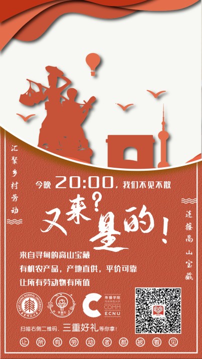 “爱,在华东师大;爱,在师大学子身上”。6月6日至6月8日,在公益直播间,和“寻意行”团队一起让爱传递、让所有的劳动者都被看见。直播助农,对口帮扶,我们很认真!
