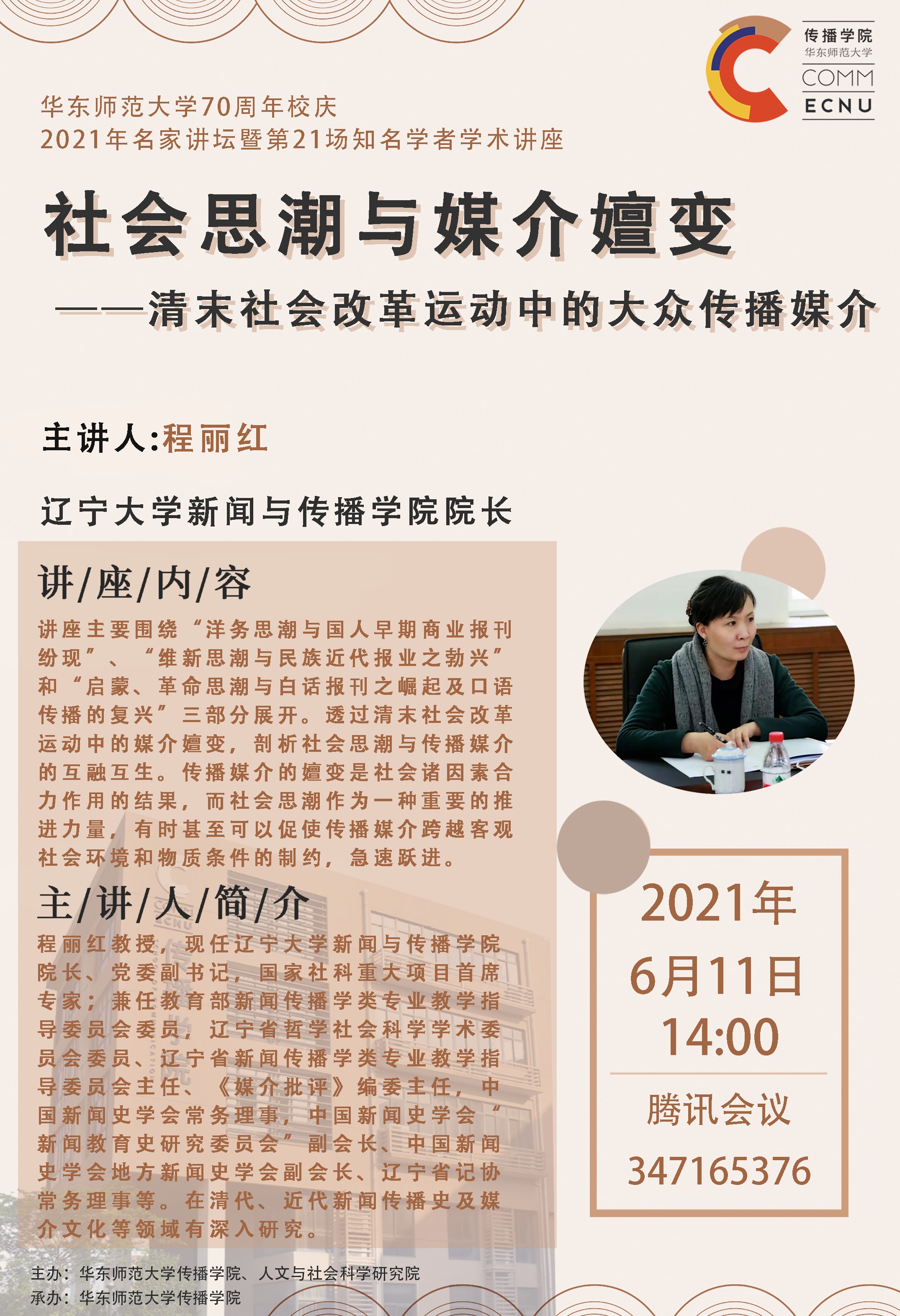 讲座题目:社会思潮与媒介嬗变 ——清末社会改革运动中的大众传播媒介