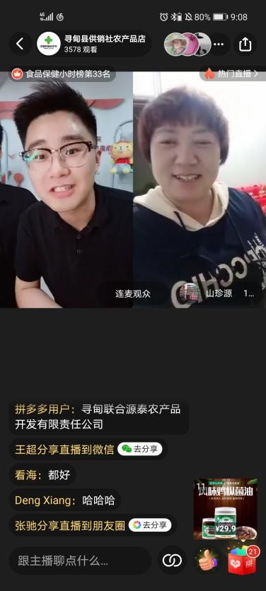 至此,“牧野篇”、“芳华篇”、“寻意篇”三场系列直播圆满收官。寻意行团队直播助农活动除带货成果显著之外,活动社会影响力的提升是本次活动的亮点。本次直播辐射范围广,包括上海市、北京市、安徽省、山东省等多个直辖市和省市区,横跨中国的东西和南北,活动也得到了社会各界的大力支持与点赞。今日头条、云南日报、消费日报等多个媒体对活动进行了报道和转发,直播的火爆人气也吸引到了上海拼多多总部的目光。华东师范大学传播学院吕新雨院长与上海拼多多总部就助农直播展开了深入探讨,未来华东师大传播学院将与上海拼多多总部进行进一步的合作,帮助寻甸供销社实现可持续发展。在双方的合作基础上,对口协作助力寻甸乡村产业振兴也将会取得更加丰硕的成果。