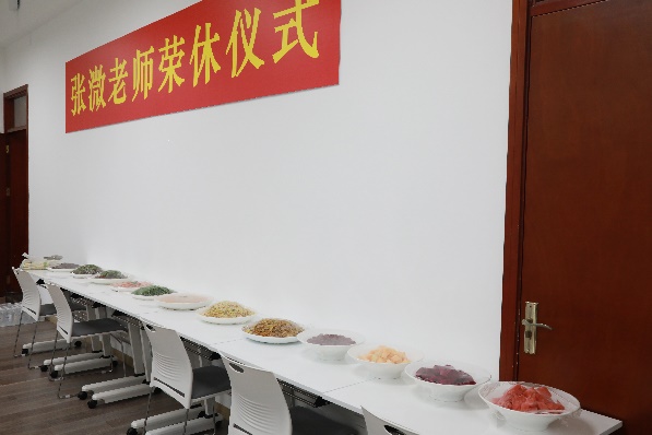 荣休仪式上,学院工会还准备了学校食堂的特色菜肴、精致点心和水果拼盘,老师们度过了一个温情满满,又快乐洋溢的中午。