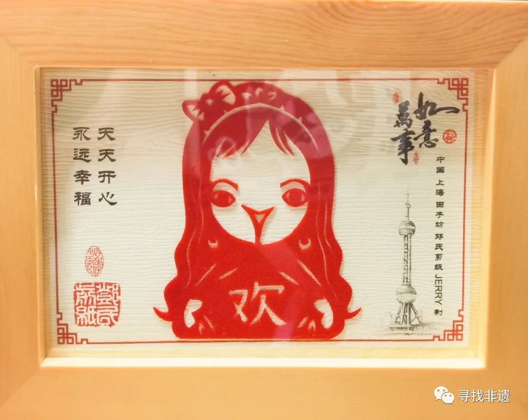 田子坊的几条巷子里,剪纸店不止邓氏一家,卖的最好几乎都是手剪人物小像。现剪现卖,只要有照片,师傅瞄两眼就能开剪。人物基础像单幅25元,剪上名字加5元,再剪生肖加10元。但在邓师傅这,起步价就是40元,却照样有成批的客人来光顾,特别在哪?