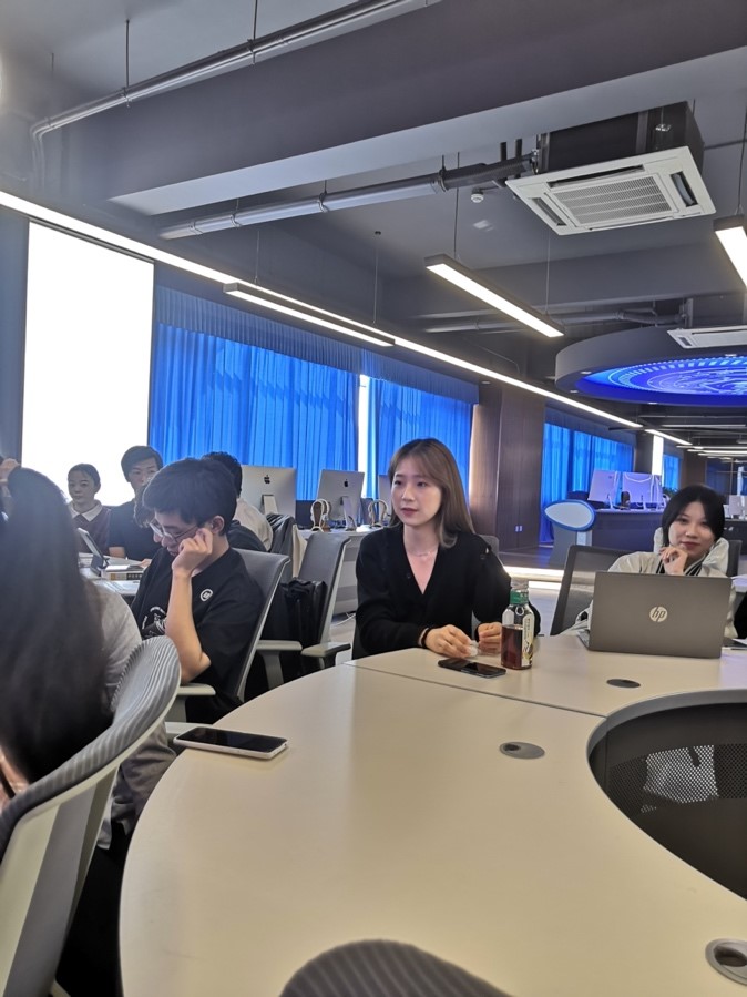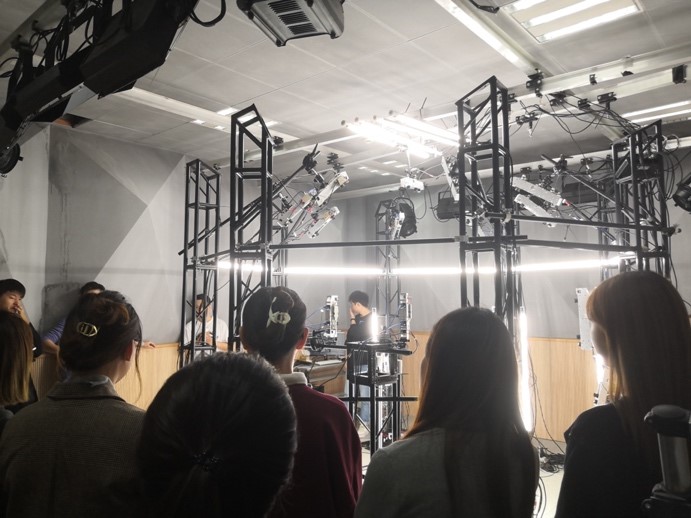 随后,同学们前往参观传播学院沉浸式3D全息影像实验室,通过近距离观察和体验,初步了解了虚拟形象的采集技术。参观后,有三位同学分别提出了自己的构想,20级播音专业韩弈同学提议设计虚拟女友,通过虚拟场景拼贴和脱口秀的方式展现生动的女友形象,并以此来映射人们的现实生活;王小丫和陈令仪同学提出古典舞发展史介绍的科普视频构想;唐艺馨同学则希望通过虚拟形象介绍上海的老建筑,带人们回顾老上海的温馨记忆和建筑背后的历史文化。“螳螂慧视”的各位专家对同学们大胆新颖的设想表示肯定,并根据实践经验,从技术可行性和操作性层面指出了“想法落地”可能面临的困难和需要完善的方向。
