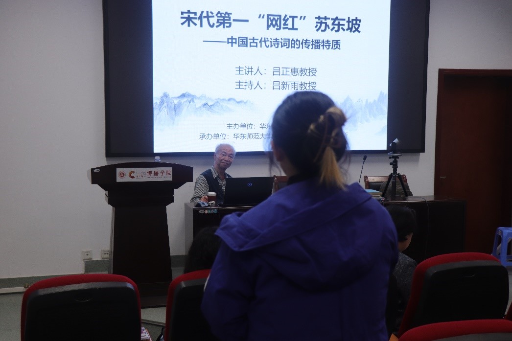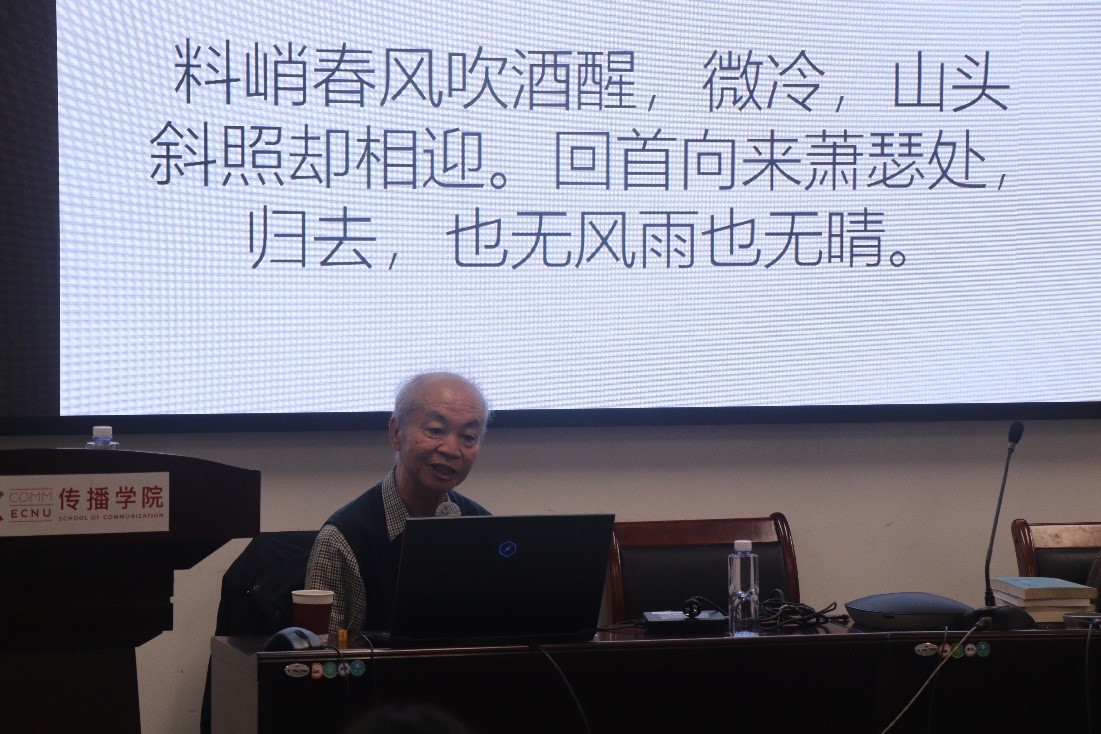 10月21日下午3点,华东师范大学70周年校庆•百场校级学术讲座第60场在传播学院212报告厅举行。本次讲座中,台湾淡江大学中文系退休教授吕正惠阐述了其对苏轼诗词传播特质的若干思考。传播学院院长吕新雨教授担任本场讲座的主持人,林哲元、吴钧老师以及数十名本硕博学生参与了本场讲座,并与吕正惠教授进行了深入讨论与交流。