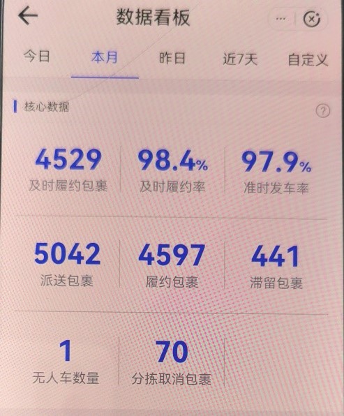 (肖女士提供的十月无人车包裹滞留与准时发车率)