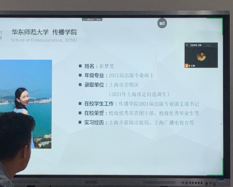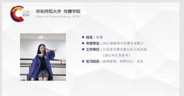 讲座伊始,华东师范大学传播学院辅导员何柳萍老师分享了近两年传播学子考取选调生、公务员的情况,并向同学们介绍了本次讲座邀请的三位学长学姐。随后,何老师重点向大家介绍了上海,浙江,江苏三个省份的考情,并播放了我校选调生宣传纪录片。