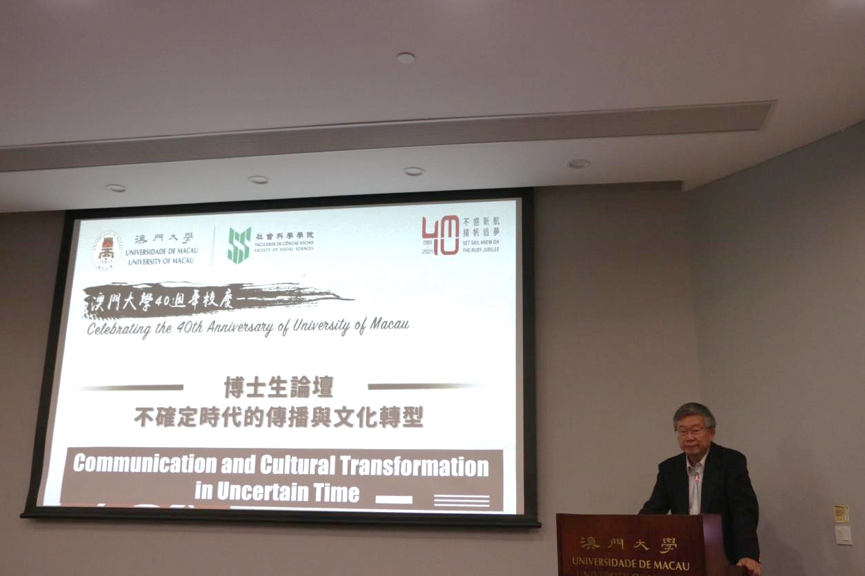2021年11月19日,由华东师范大学传播学院和澳门大学社会科学学院传播系联合主办的博士生论坛“不确定时代的传播与文化转型”在澳门大学开幕。在本次博士生论坛中,两校共十七位博士生进行了主题演讲,两院教师共同承担评议工作。十七位博士生围绕自己的研究选题、问题意识、研究方法与各位教师进行了互动交流。