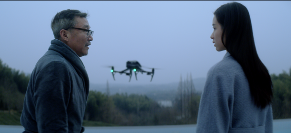 我当时在剧本上的主要“贡献”是试图增加它的现实感。比如老屠的情人这条线,希望能让人物落地,让社会关系能够进来,所以我就建议酒吧这条线到浙江义乌去拍,通过两人的连线视频把浙江世界工厂的背景带出来。这种成分我本来希望能有更多,现在虽然不太多,但还是基本保留了中国和世界市场的关系。当时刚好赶上特朗普大选,和法国“黄马甲”运动,都跟义乌有关系。特朗普和希拉里竞选,义乌小商品订单的大数据提前锁定了竞选结果,老屠情人的工厂里正在制作的就是销往法国的黄马甲。这些不仅与我们的大数据主题契合,还为这个主题注入了很强的现实感。所以我极力推动章明导演,让这个故事能跟更广大的世界产生联系,在人物命运里体现出来。我最不满意的是之前那个黑社会的版本,太套路化了。所以想用这种现实感来平衡那种套路。还有后面的无人机送货,也是我加进来的,本来准备在夏天拍,所以无人机原本送的是荔枝。后来拖到冬天才拍,就改成了送酒酿圆子。