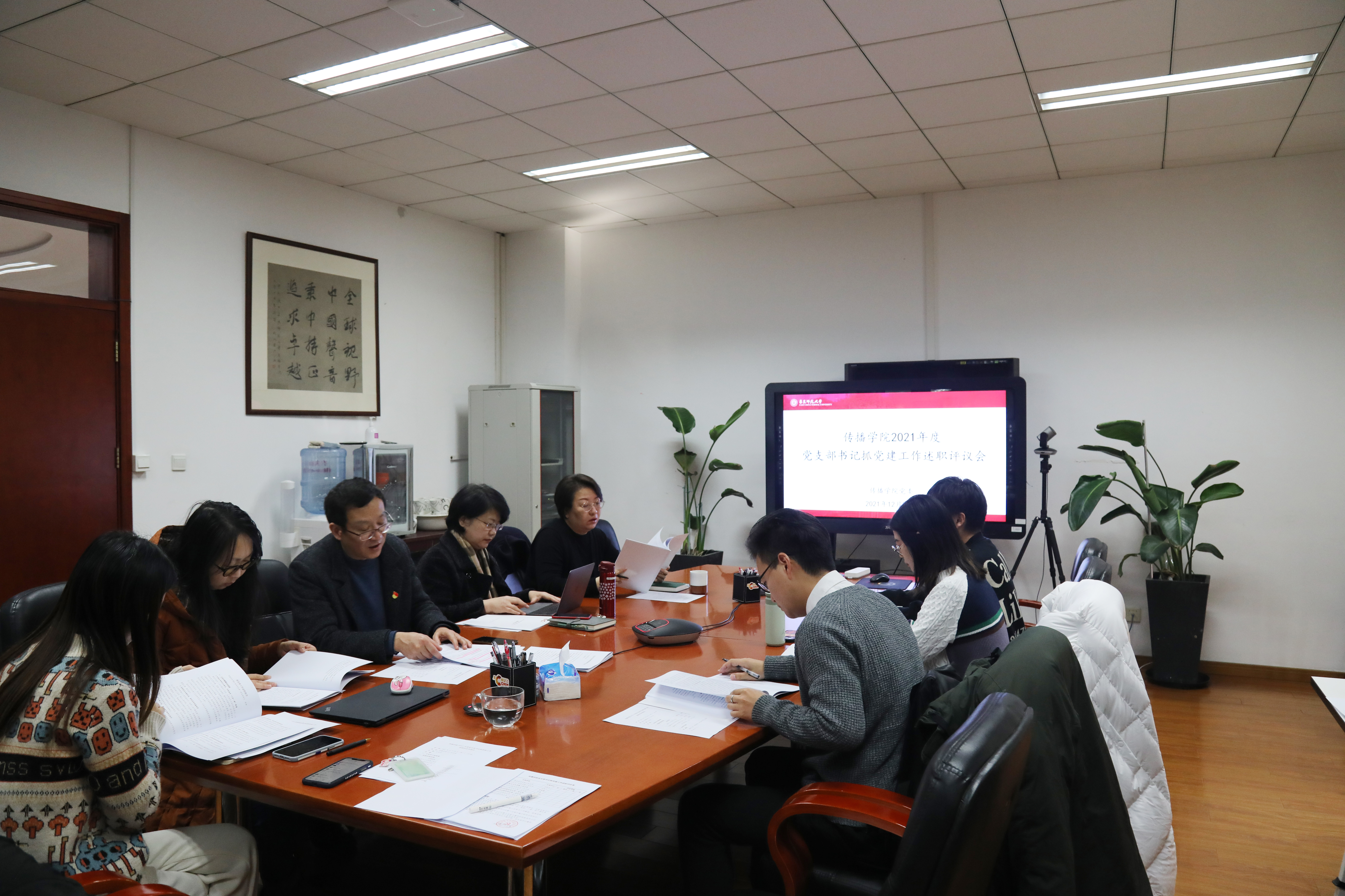为深入学习贯彻党的十九届六中全会精神,用习近平新时代中国特色社会主义思想武装头脑、指导实践、推动工作,进一步落实党建工作责任制,全面提高基层党的建设质量和水平,12月29日上午,传播学院党委组织召开2021年度党支部书记抓党建工作述职评议会。学院党委委员、党支部书记、党员代表、群众代表20余人参加会议。