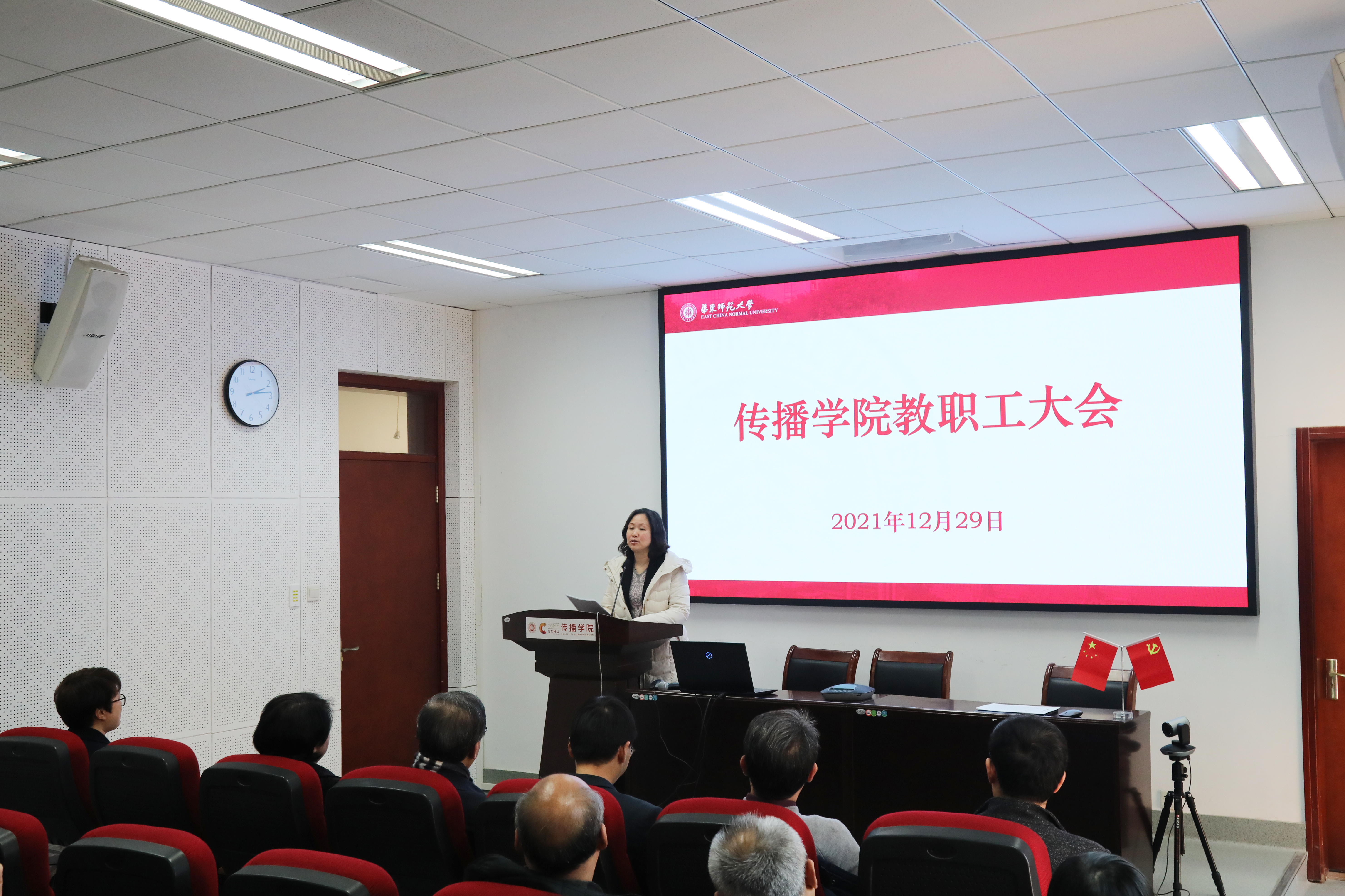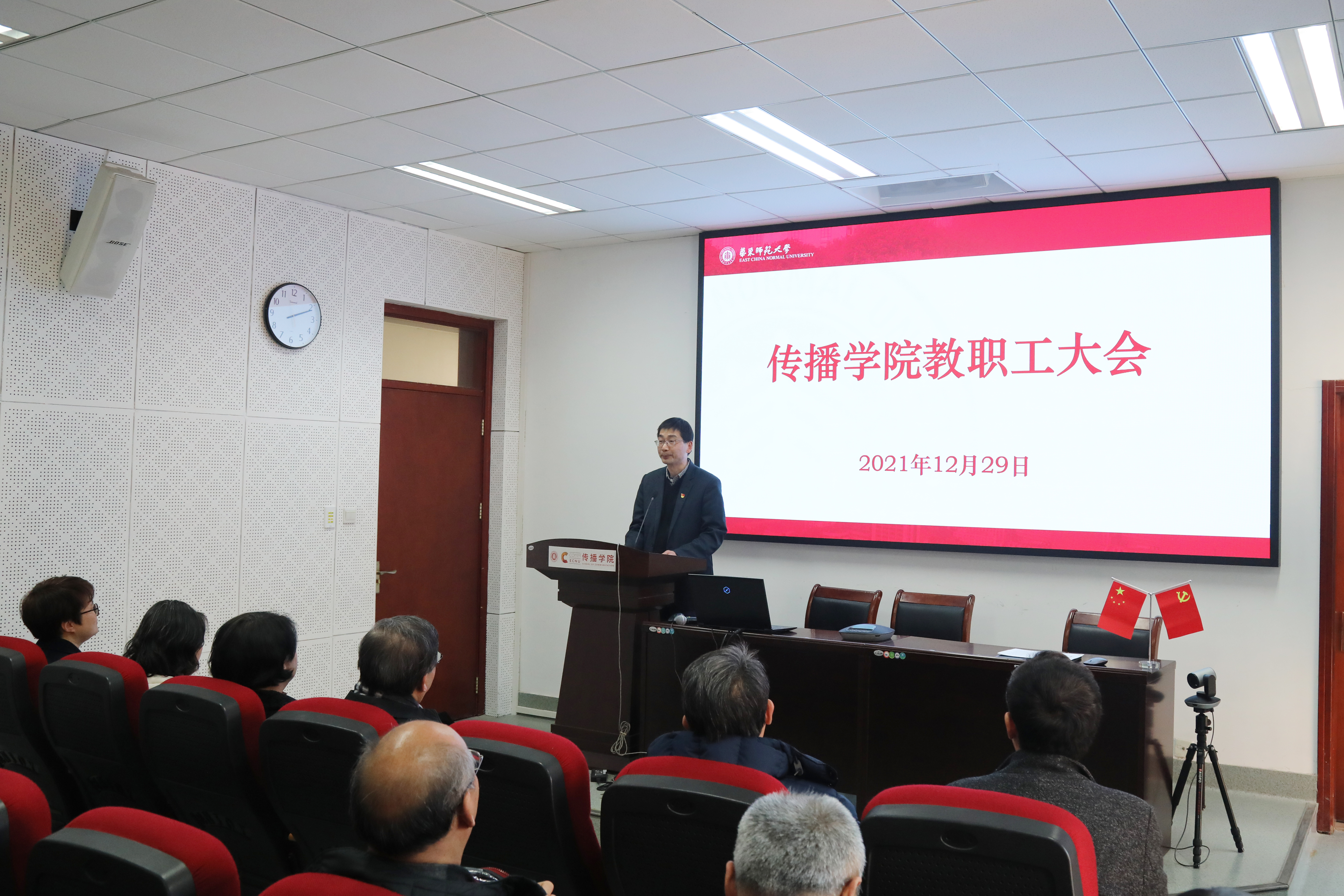 12月29日下午,传播学院召开教职工大会。校党委副书记朱民,校党委常委、副校长顾红亮,校党委常委、组织部部长程静,及传播学院全体教职工出席会议。会议由顾红亮主持。
