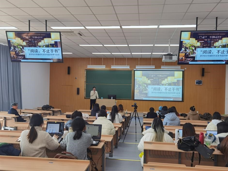 2021年12月30日,2021年秋季学期“创意经济与传播讲座系列”第九场讲座开讲,建投书局华东业务中心总经理、上海市青年文学艺术联合会会员谢重澄围绕数字知识传播时代实体书店的探索与变革展开讲座,数十名传播学院本科生、研究生到场聆听。