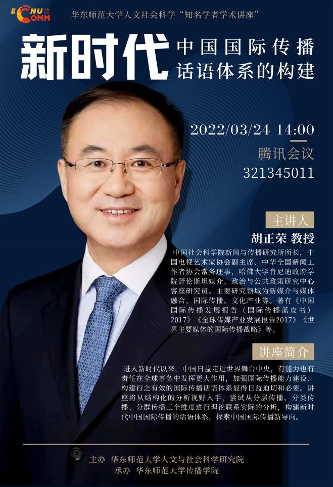 进入新时代以来,中国日益走近世界舞台中央,有能力也有责任在全球事务中发挥更大作用,加强国际传播能力建设、构建行之有效的国际传播话语体系显得日益迫切和必要。讲座将从结构化的分析视野入手,尝试从分层传播、分类传播、分群传播三个维度进行理论联系实际的分析,构建新时代中国国际传播的话语体系,探索中国国际传播新导向。