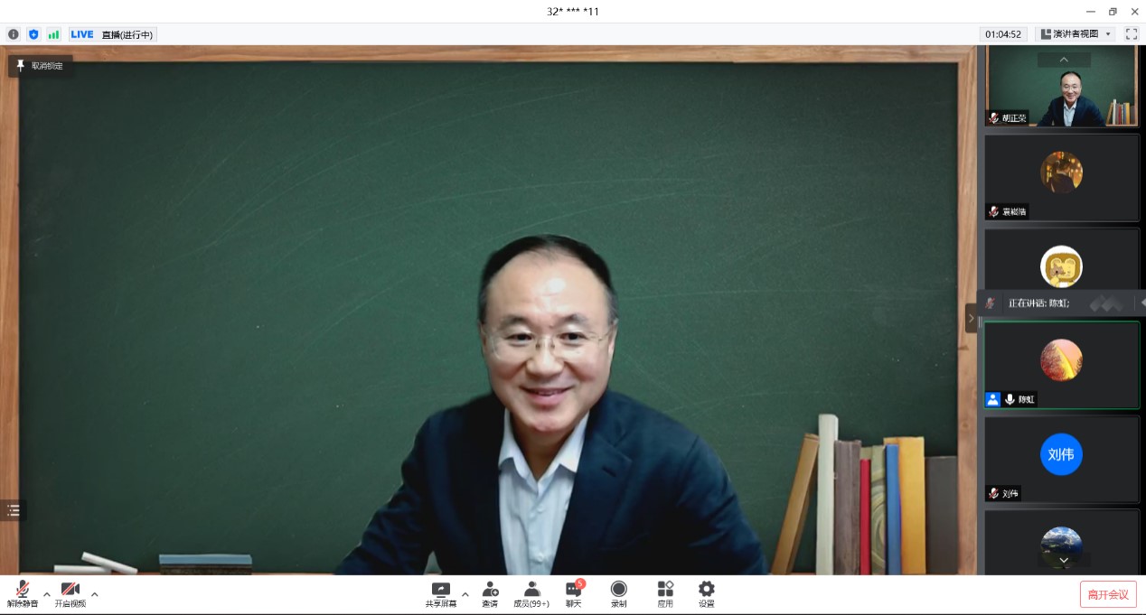 2022年3月24日下午两点,华东师范大学人文社会科学“知名学者学术讲座”在腾讯会议平台举行。中国社会科学院新闻与传播研究所所长、教授、博士生导师胡正荣以“新时代中国国际传播话语体系的构建”为主题,结合宏大的理论视野和翔实的案例资料,阐发了他对中国国际传播话语体系建设问题的思考。本场讲座由传播学院副院长陈虹教授主持,五百余位听众在线参与。