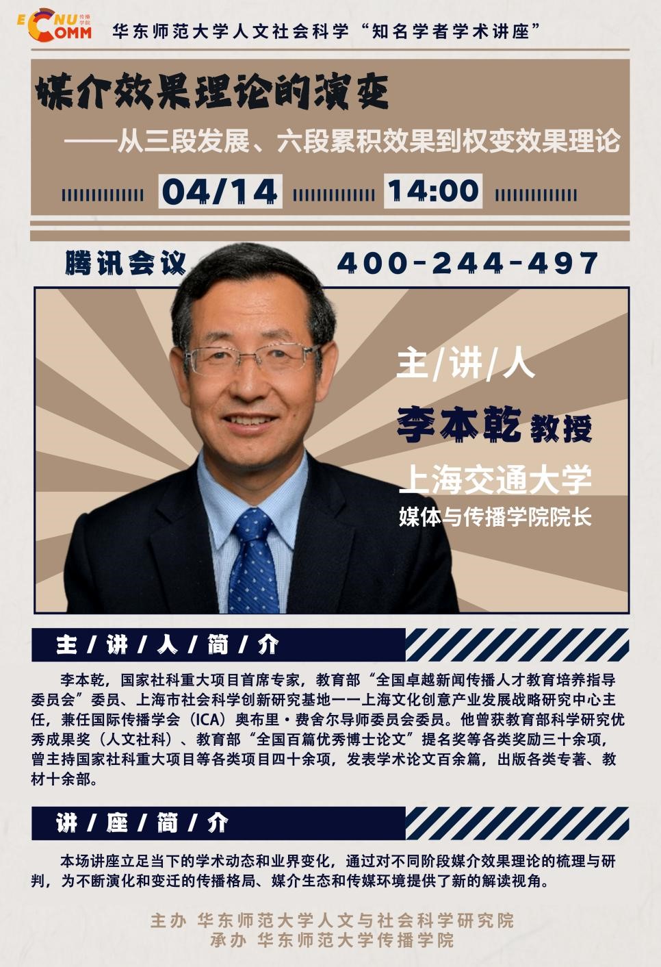 李本乾,国家社科重大项目首席专家,教育部“全国卓越新闻传播人才教育培养指导委员会”委员、上海市社会科学创新研究基地一一上海文化创意产业发展战略研究中心主任,兼任国际传播学会(ICA)奥布里·费舍尔导师委员会委员。他曾获教育部科学研究优秀成果奖(人文社科)、教育部“全国百篇优秀博士论文”提名奖等各类奖励三十余项,曾主持国家社科重大项目等各类项目四十余项,发表学术论文百余篇,出版各类专著、教材十余部。
