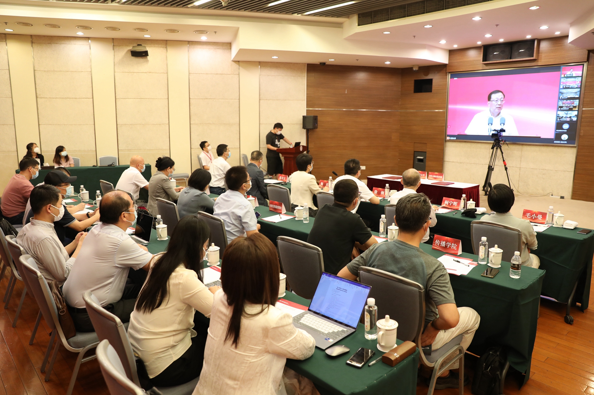 上海世纪出版(集团)有限公司党委副书记、总裁阚宁辉,华东师范大学党委常委、副校长顾红亮,上海市委宣传部出版处处长毛小曼,以及华东师范大学传播学院、出版学院、出版社,学校相关职能部门、学院负责人,出版与文化系骨干教师代表等在华东师范大学分会场参加了本次会议。