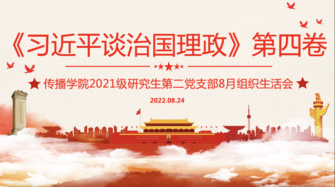 2022824日,传播学院2021级研究生第二党支部“共学《习近平谈治国理政》第四卷”主题党日活动于线上召开。传播学院2021级研究生第二党支部全体党员和入党积极分子相聚云端,共同学习《习近平谈治国理政》第四卷。本次主题党日活动由传播学院2021级研究生第二党支部书记郭昊雯主持。