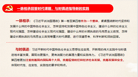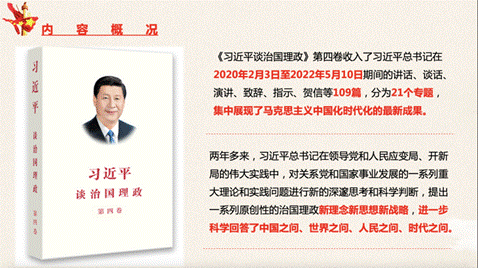 《习近平谈治国理政》第四卷中收录了2020年至2022年的内容,时间距离我们更接近,尤其是著作中用了三个专题论述中国推动人类命运共同体作出的新贡献,对于世界范围内中国做出的贡献,本部著作进行了更加全面的梳理与展现。在当下百年变局与世纪疫情相互叠加的局面下,该书也强调了新时代下中国如何去构建全人类的共同价值,如何构建人类命运共同体,如何去践行真正的多边主义等世界性的中国举措。