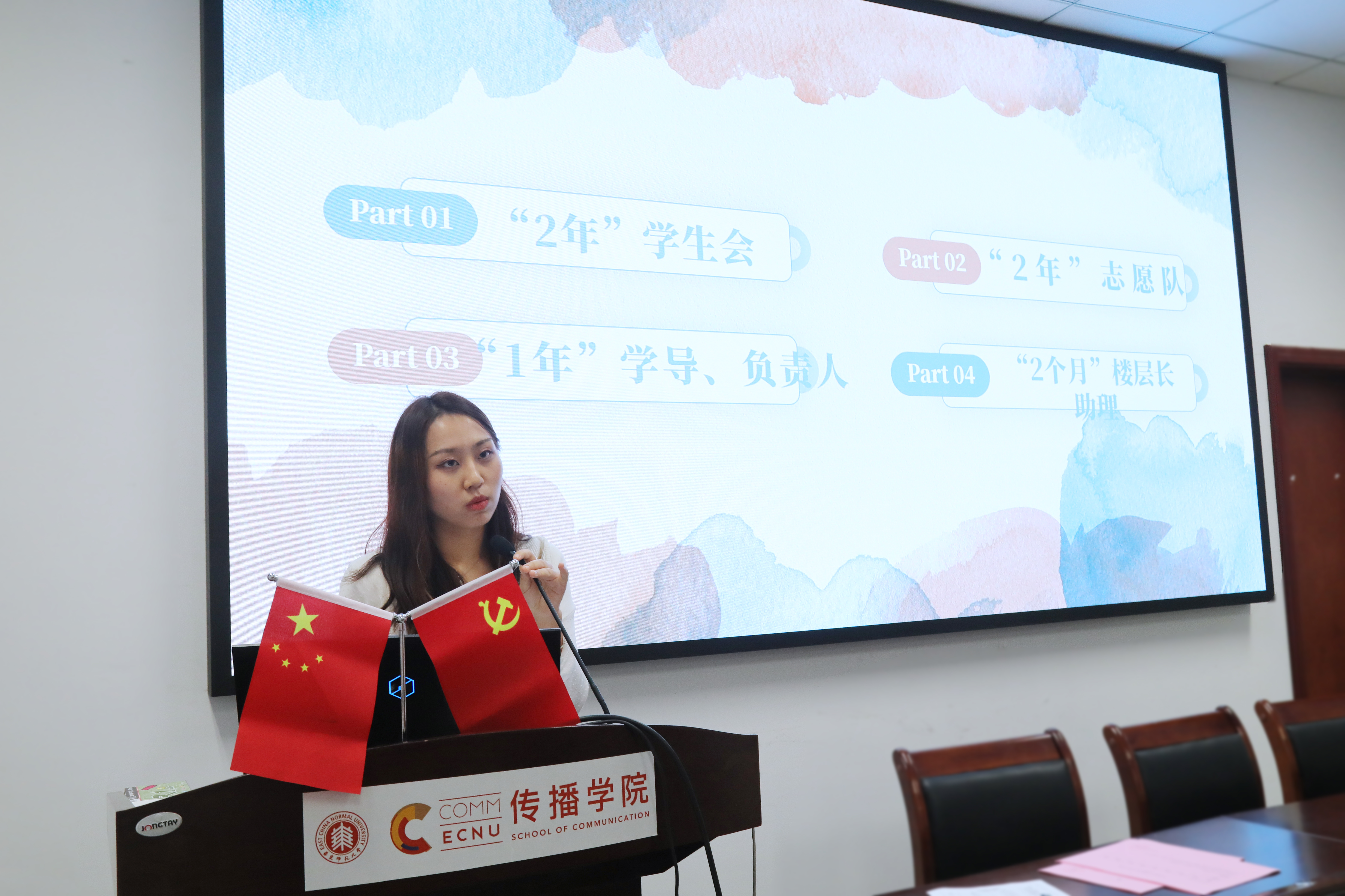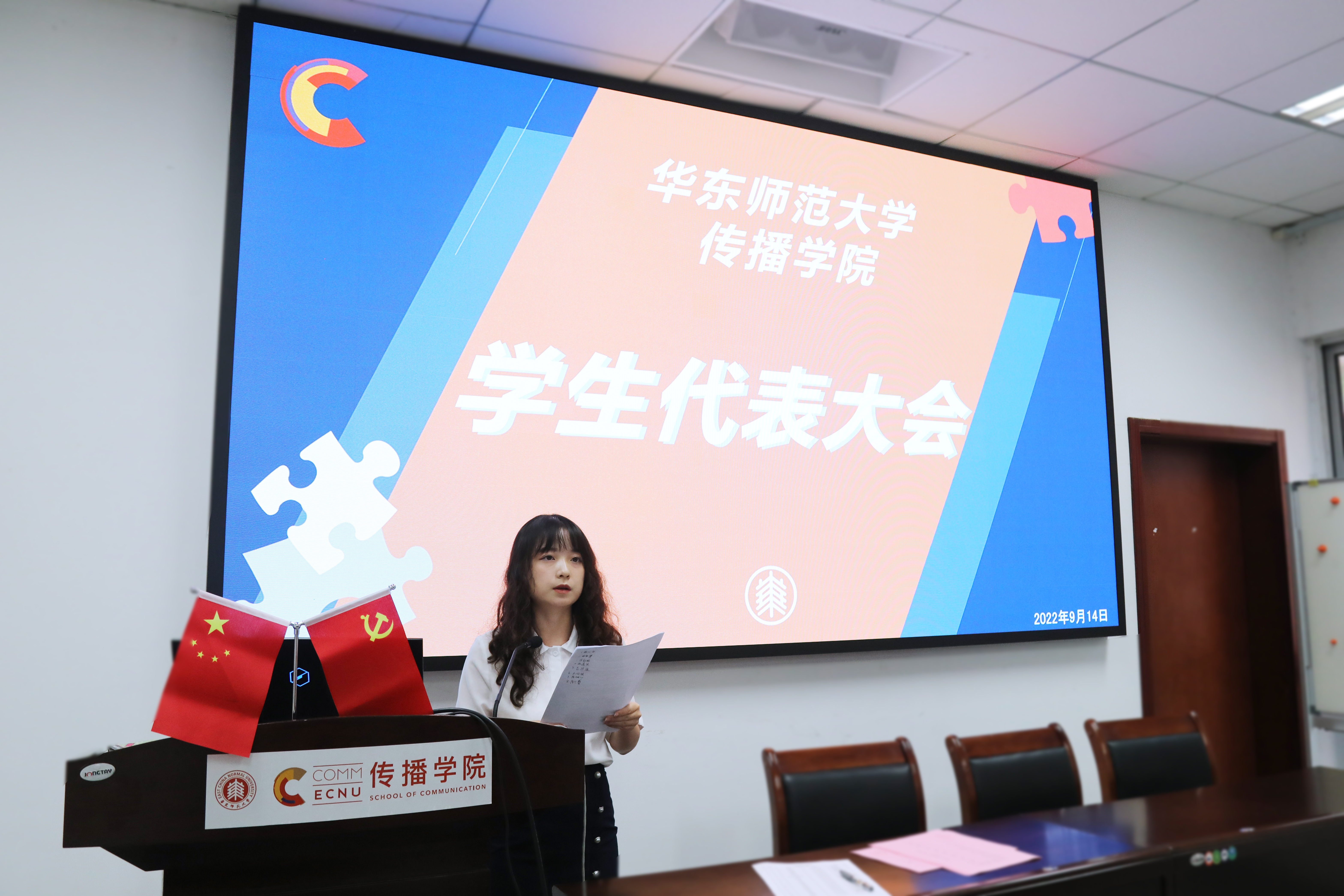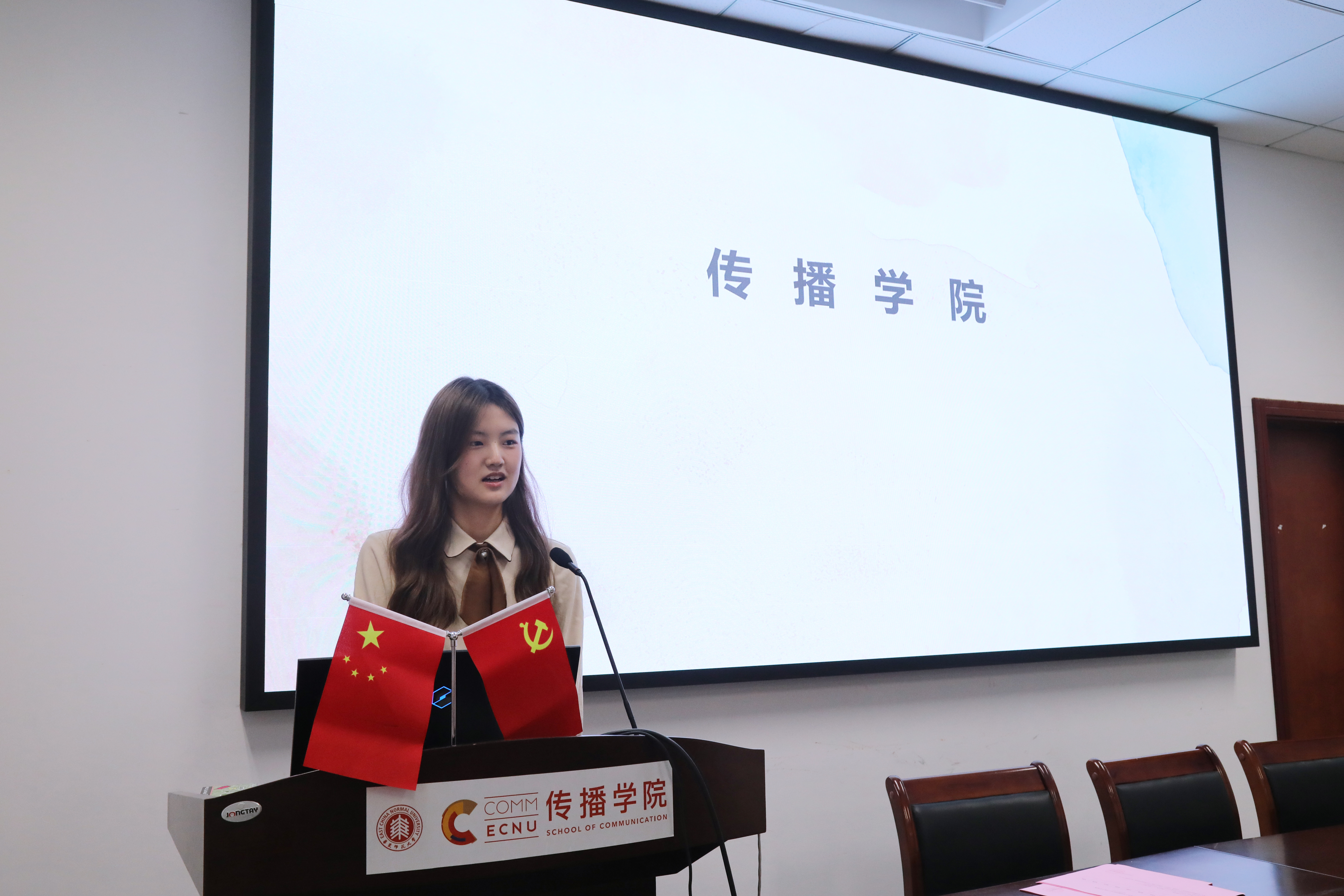 华东师范大学传播学院党委副书记、副院长杜彬彬,传播学院团委书记吴烨茜,传播学院团委副书记王培茗,传播学院专职辅导员张炜帆出席会议。大会由19级新闻学专业张芷若主持。
