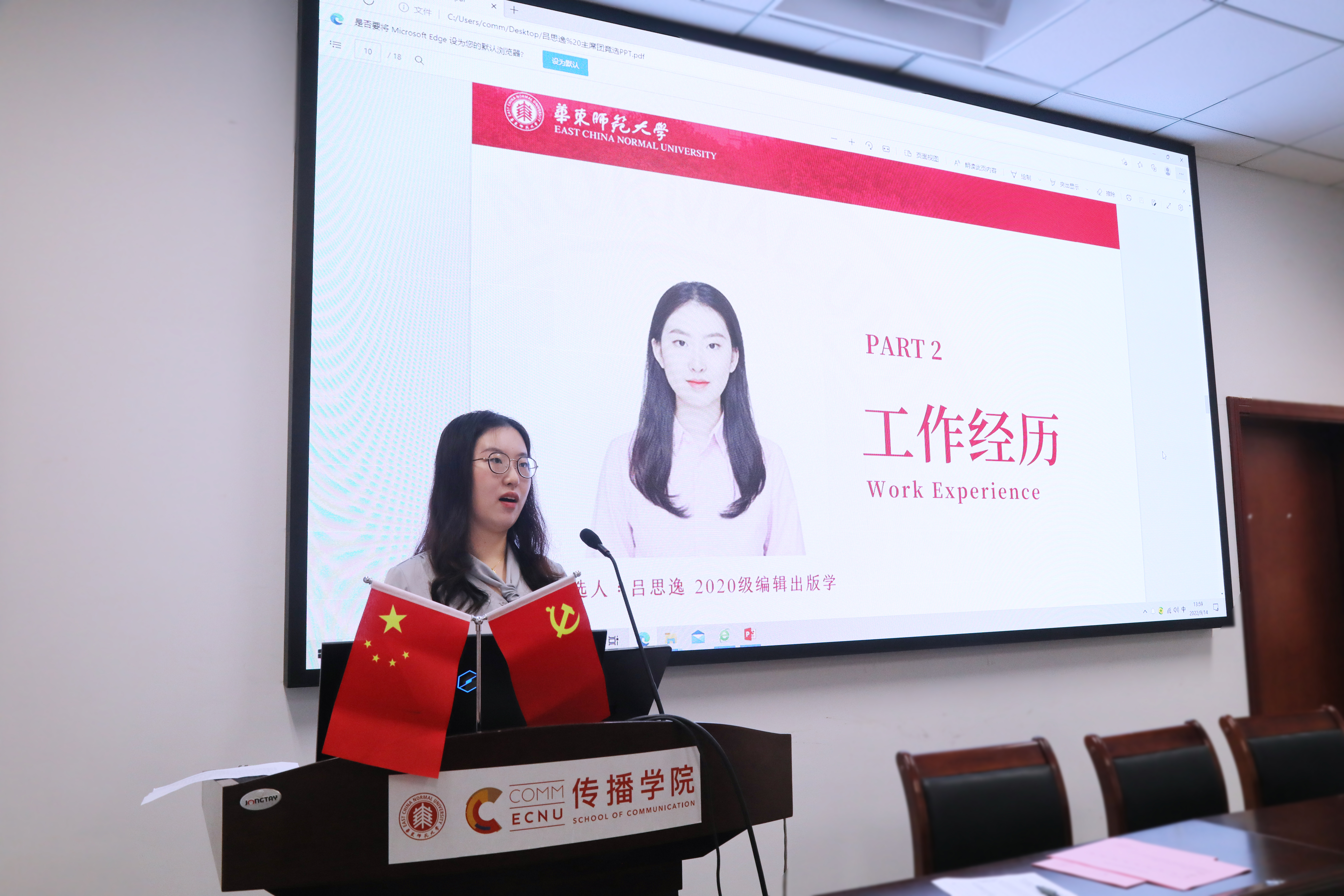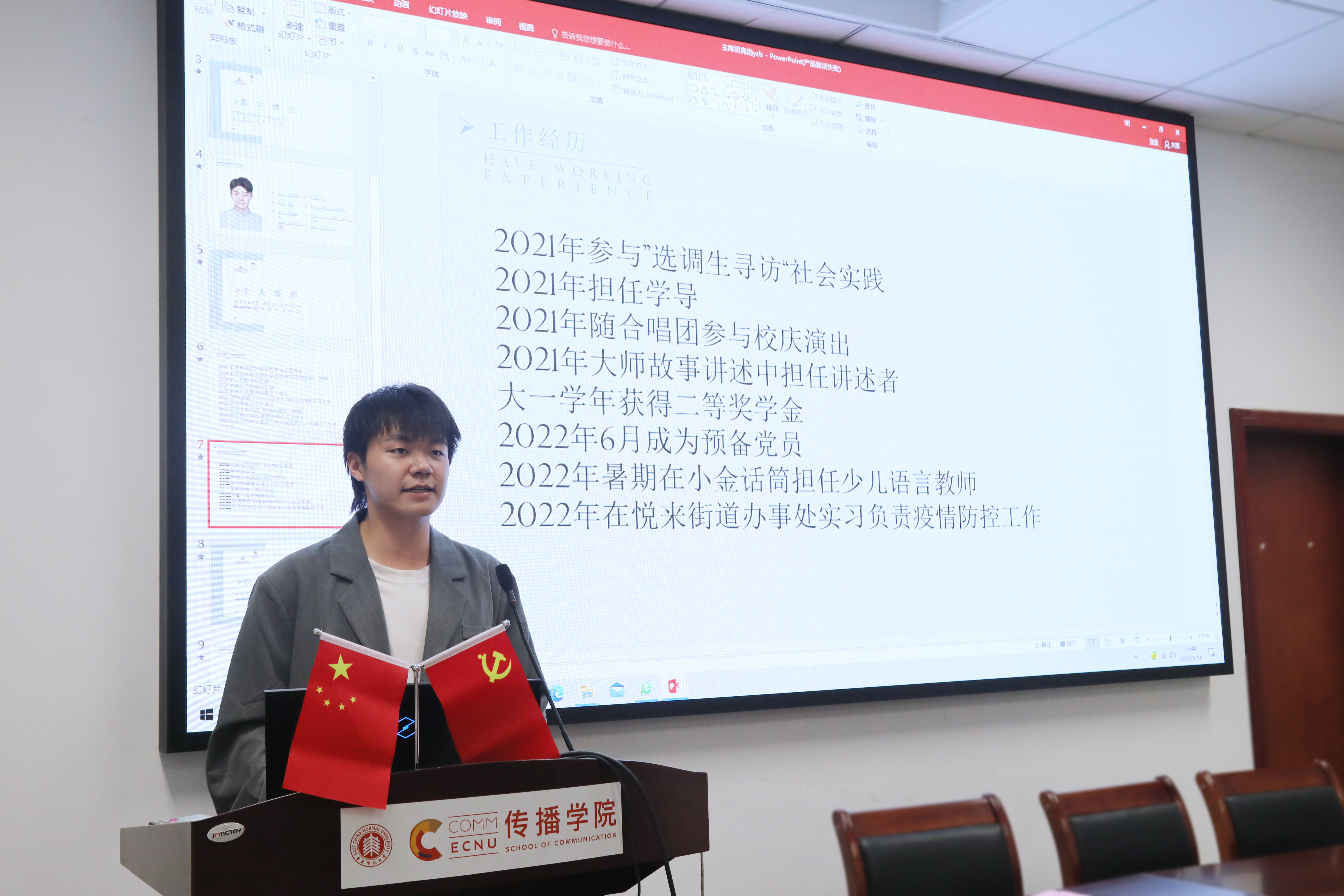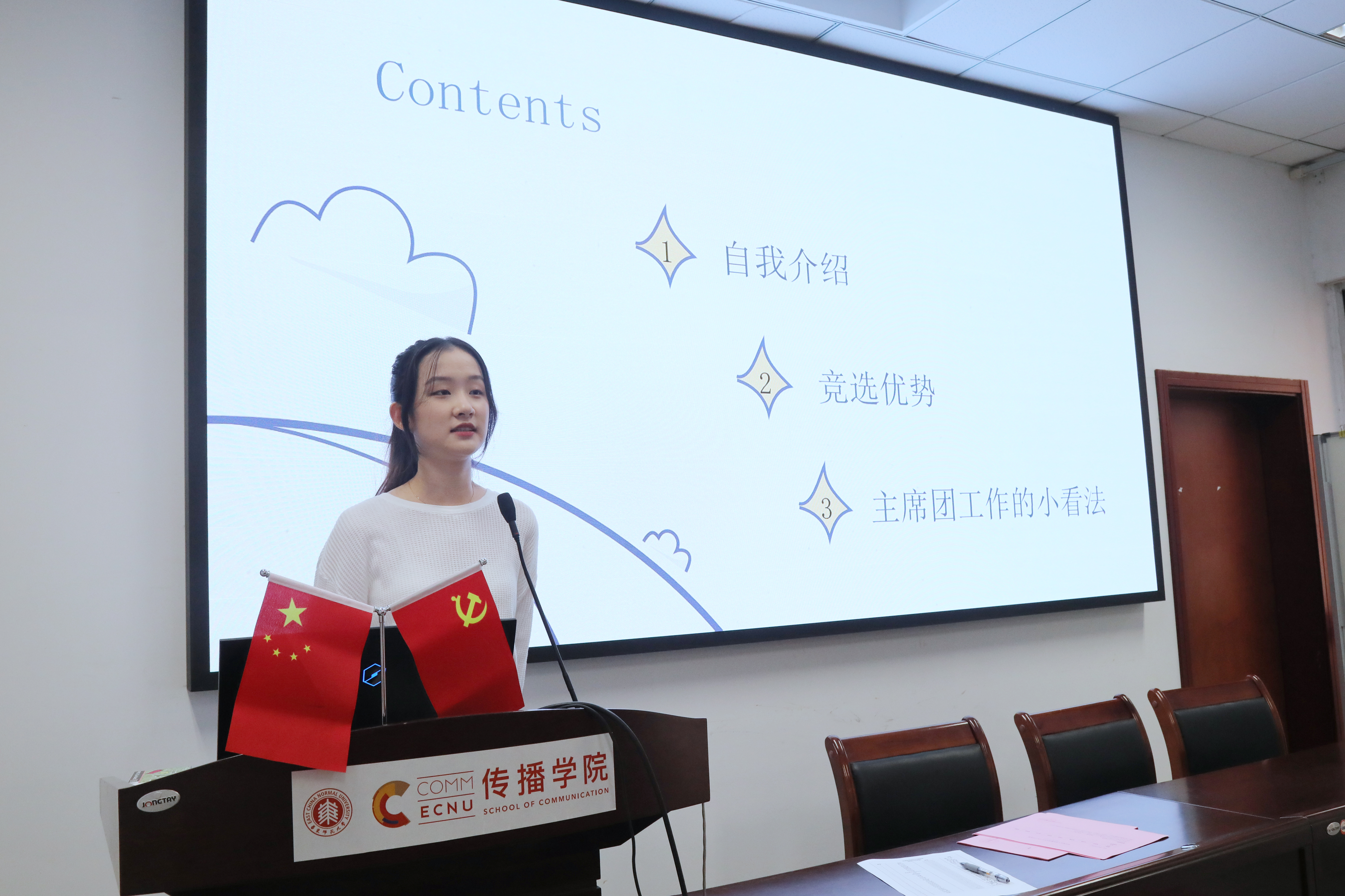 华东师范大学传播学院党委副书记、副院长杜彬彬,传播学院团委书记吴烨茜,传播学院团委副书记王培茗,传播学院专职辅导员张炜帆出席会议。大会由19级新闻学专业张芷若主持。