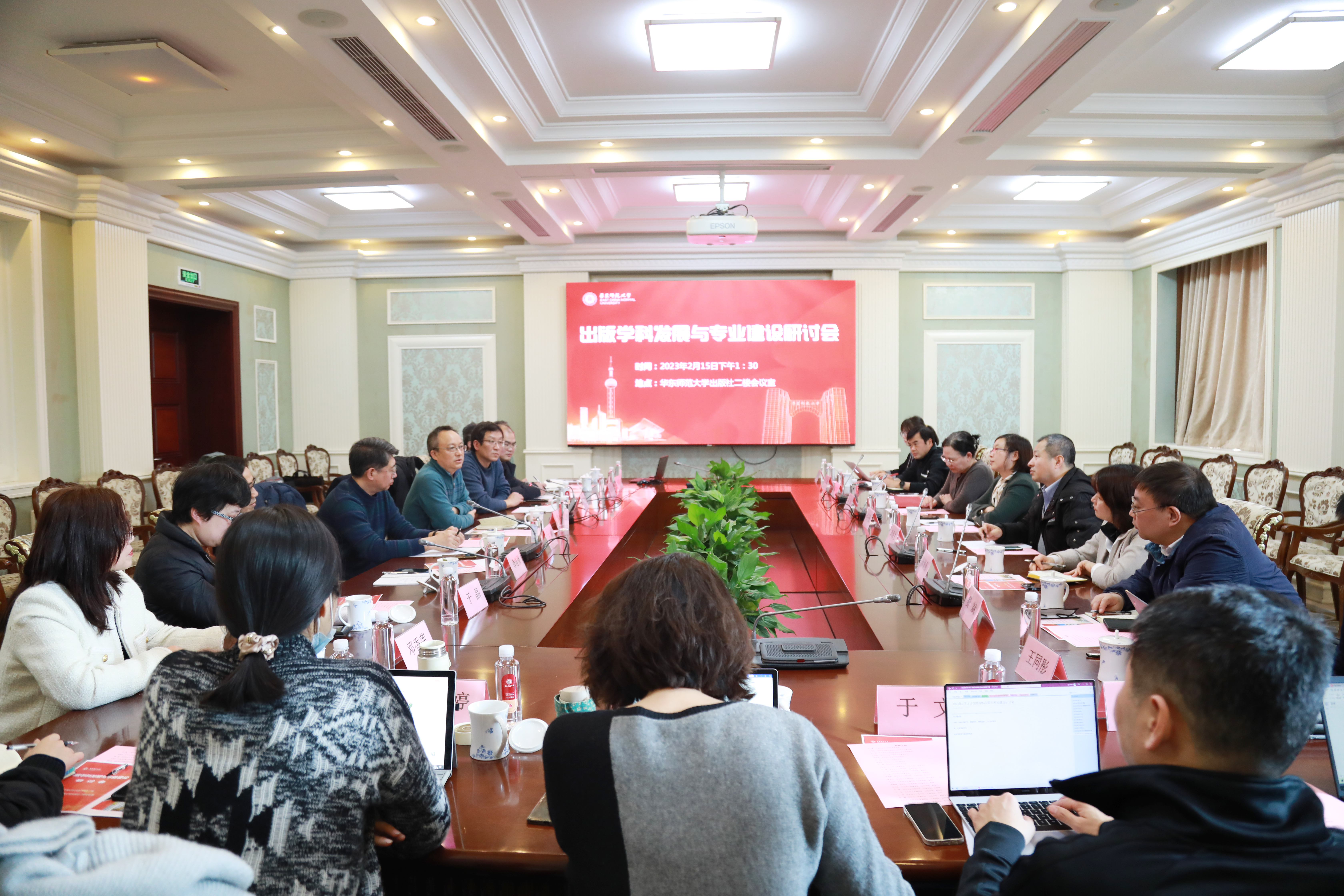 新学期新气象。2023年2月15日,出版学科发展与专业建设研讨会在华东师范大学出版社会议室举行。上海市委宣传部出版处处长毛小曼,华东师范大学研究生院学位管理办公室主任李海生、人文与社会科学研究院副院长费斌、重点建设办公室副主任王同彤等学校相关职能部门领导,华东师范大学出版社王焰社长、龚海燕副社长、王健副社长,出版学院党委书记方奇华、院长王峰、出版学科带头人雷启立教授以及学院全体教师出席会议,围绕如何进一步落实学科建设、人才培养、产教融合等议题展开研讨。会议由出版学院党委书记方奇华主持。