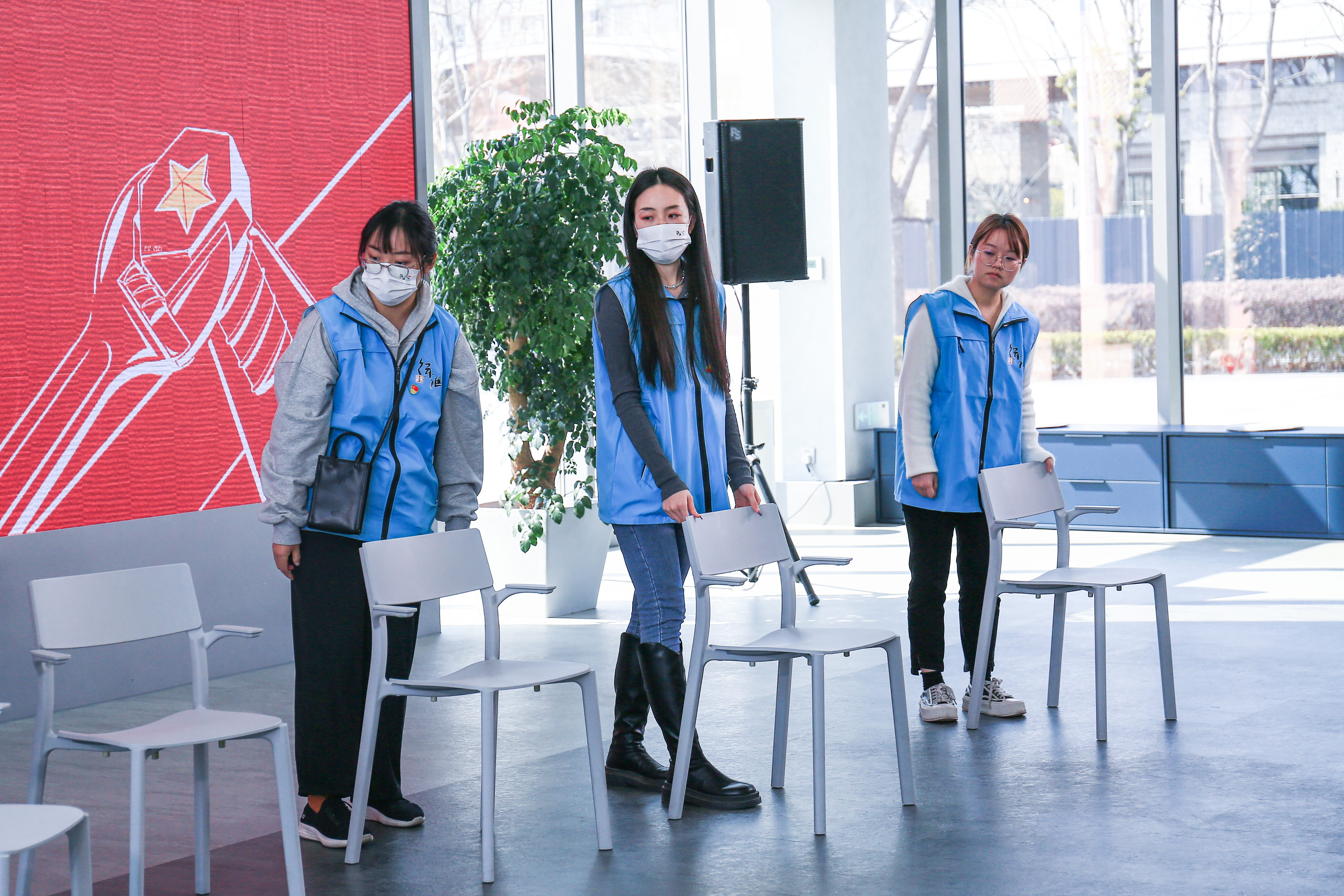 为做好室内启动仪式的保障工作,支部党员承担起入场签到、桌椅布置、现场礼仪、秩序维护等工作。