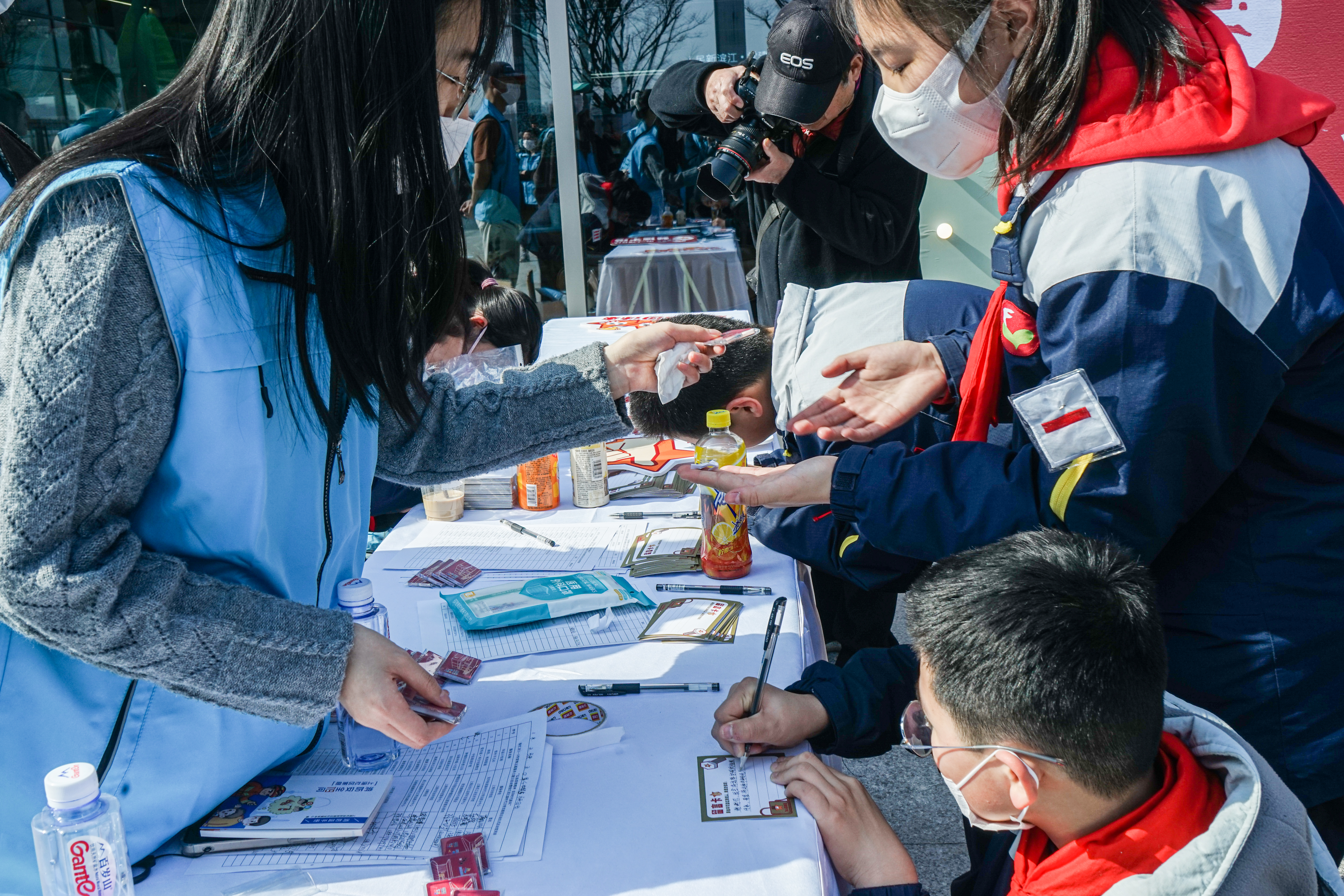 同时,室外志愿服务市集正如火如荼进行,支部党员在物资分发与回收、市民解答与引导、环境清洁与维护等岗位上轮换,开展多面向的志愿服务工作。
