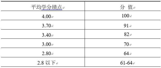 其中,学生i的平均学分绩点对应值按以下的转换标准进行,C为所有申请者学业成绩的最高分。