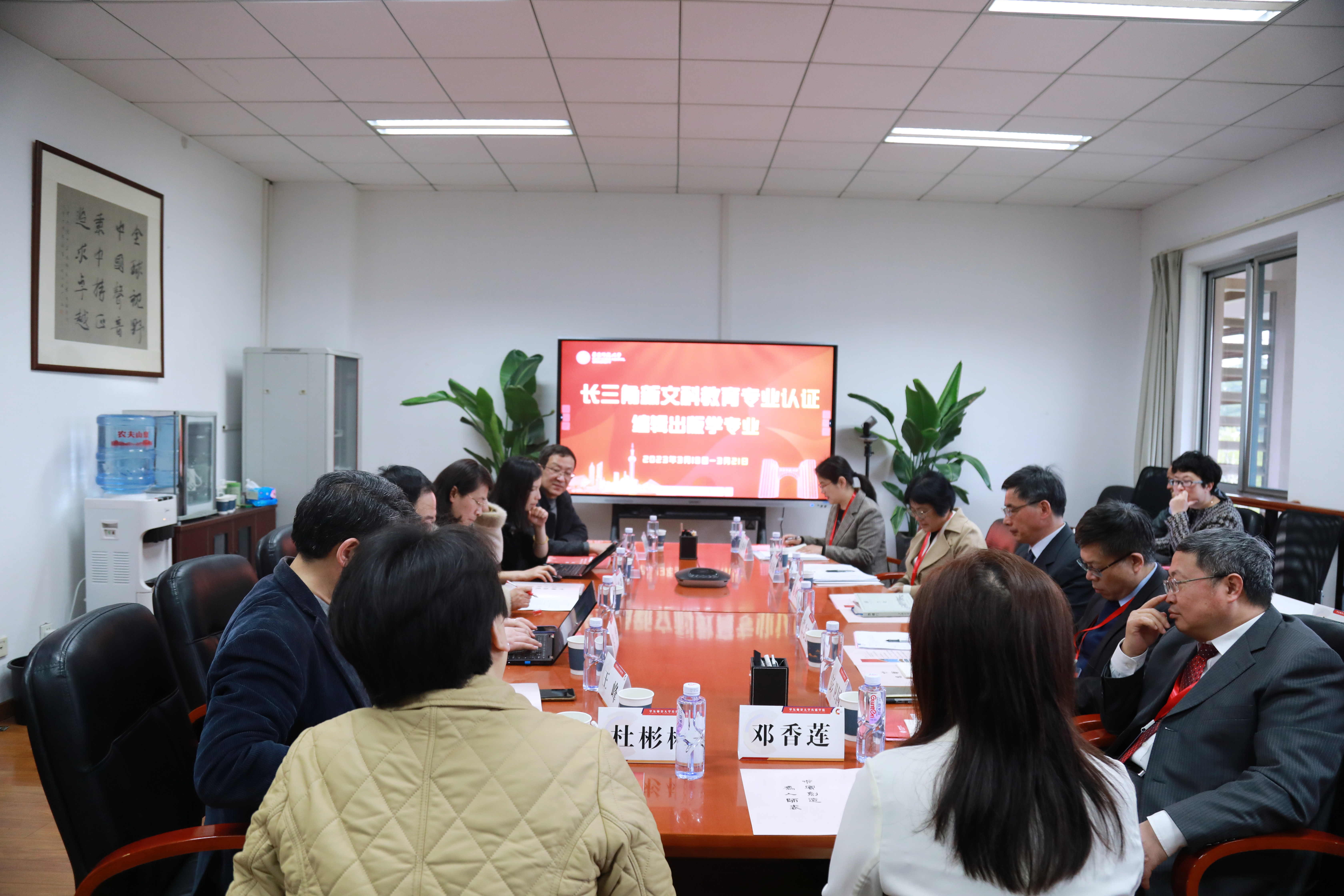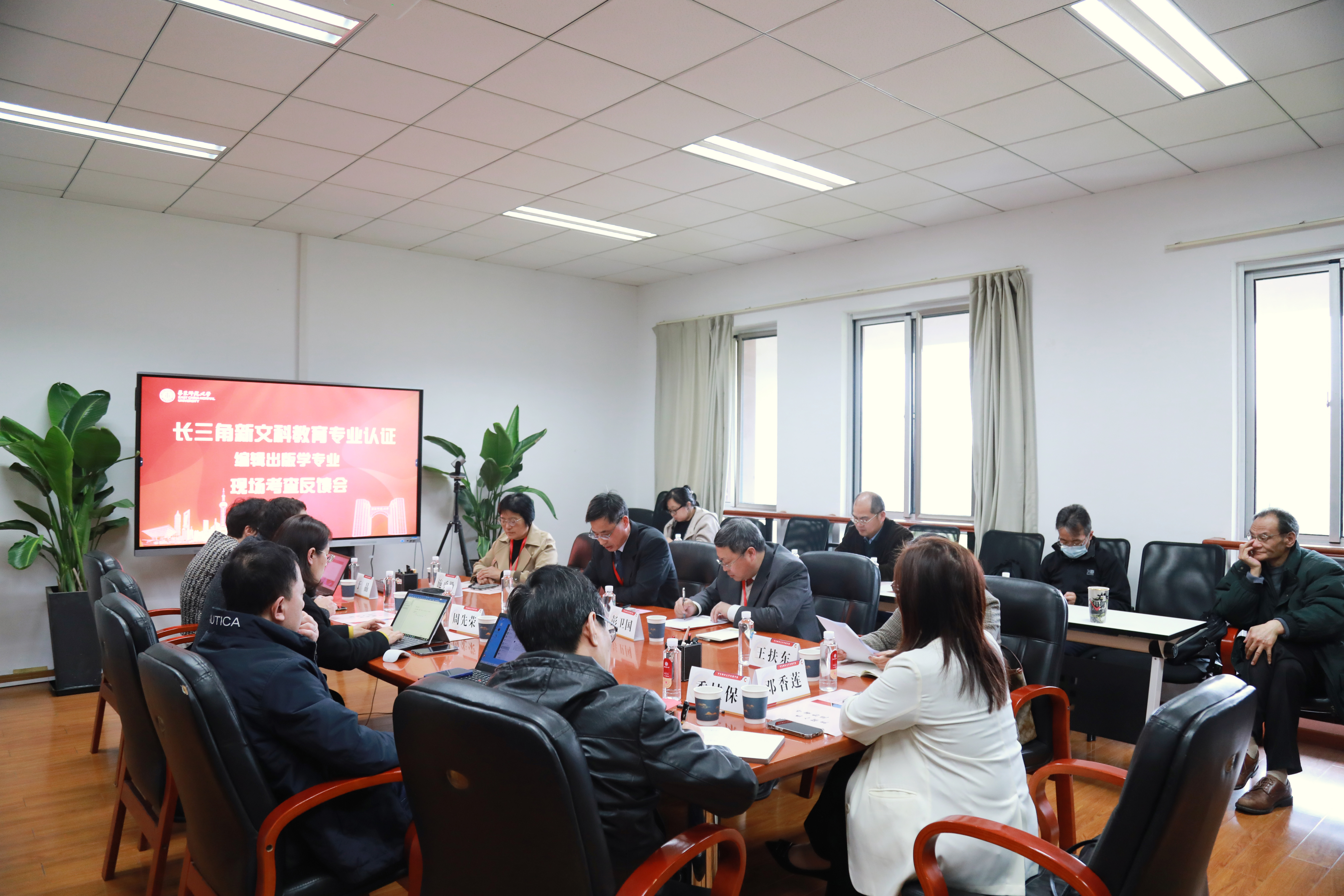 3月20日上午,长三角新文科教育专业认证编辑出版学专业现场考查见面会顺利召开。全体专家组成员,华东师范大学教务处周先荣副处长、校学生工作处李燕副处长、校招生办公室秦虎副主任,传播学院党委书记方奇华、院长王峰、党委副书记兼副院长杜彬彬、副院长肖洋、副院长于晶、副院长路鹏程,编辑出版学专业负责人季桂保、邓香莲及相关专业教师出席会议。现场考查见面会由王峰主持。
