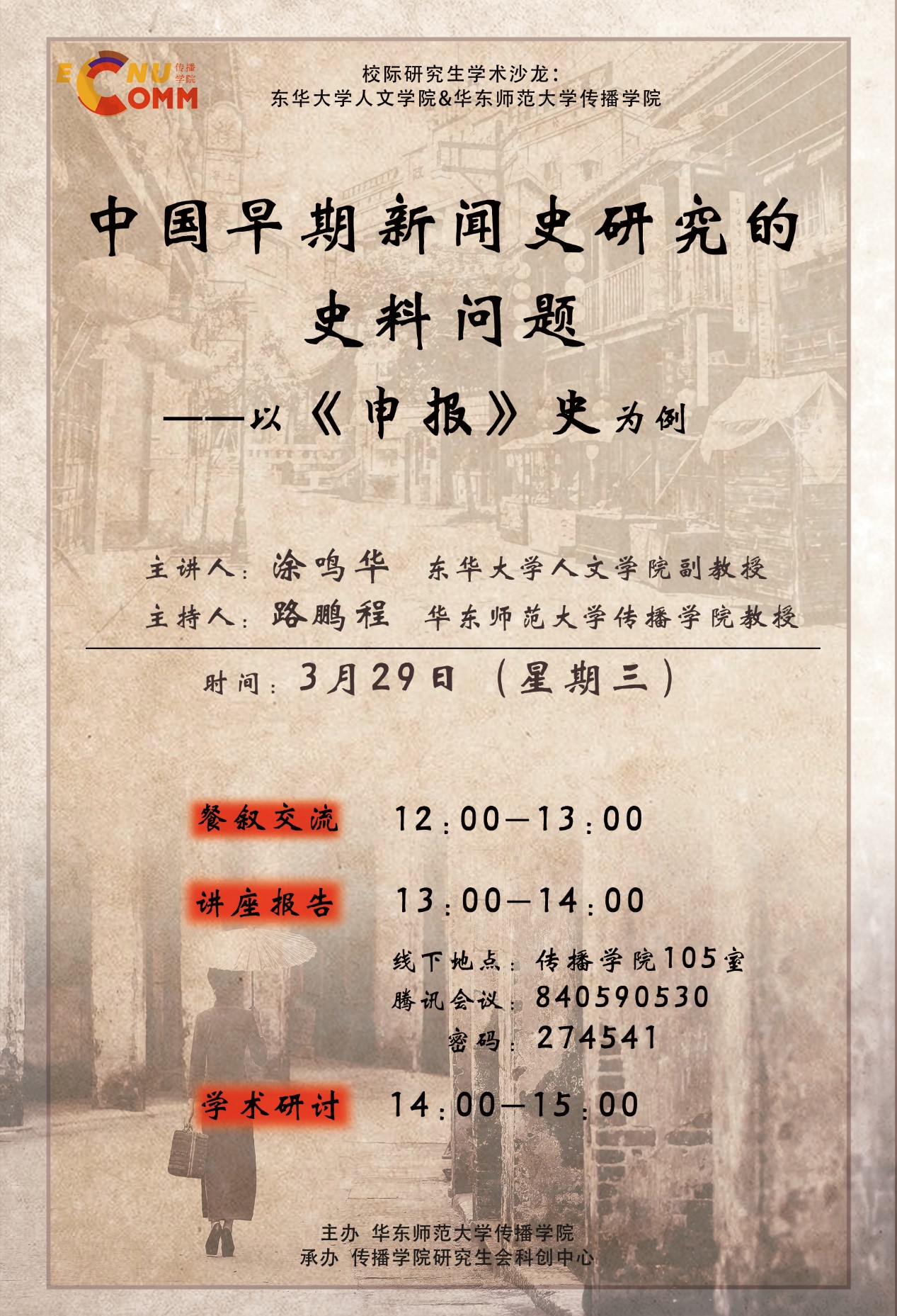 中国早期新闻史研究的不少材料来源于二手材料,随着原报原刊以及档案文献的出版,网络检索手段的更新,以往的一些史实和观点存在着错误和不实之处。本讲座以《申报》的历史为例,指出该报的早期历史,主要材料来自于创刊五十年纪念活动时,一些老报人所发表的回忆文章,年代久远,造成一些史实模糊不清。而后又因《申报》影印出版、各类研究文献的推崇,导致《申报》早期历史出现不断被拔高神话的倾向。因此本研究回归史料本源,考辩和澄清《申报》早期历史的一些不实之处。
