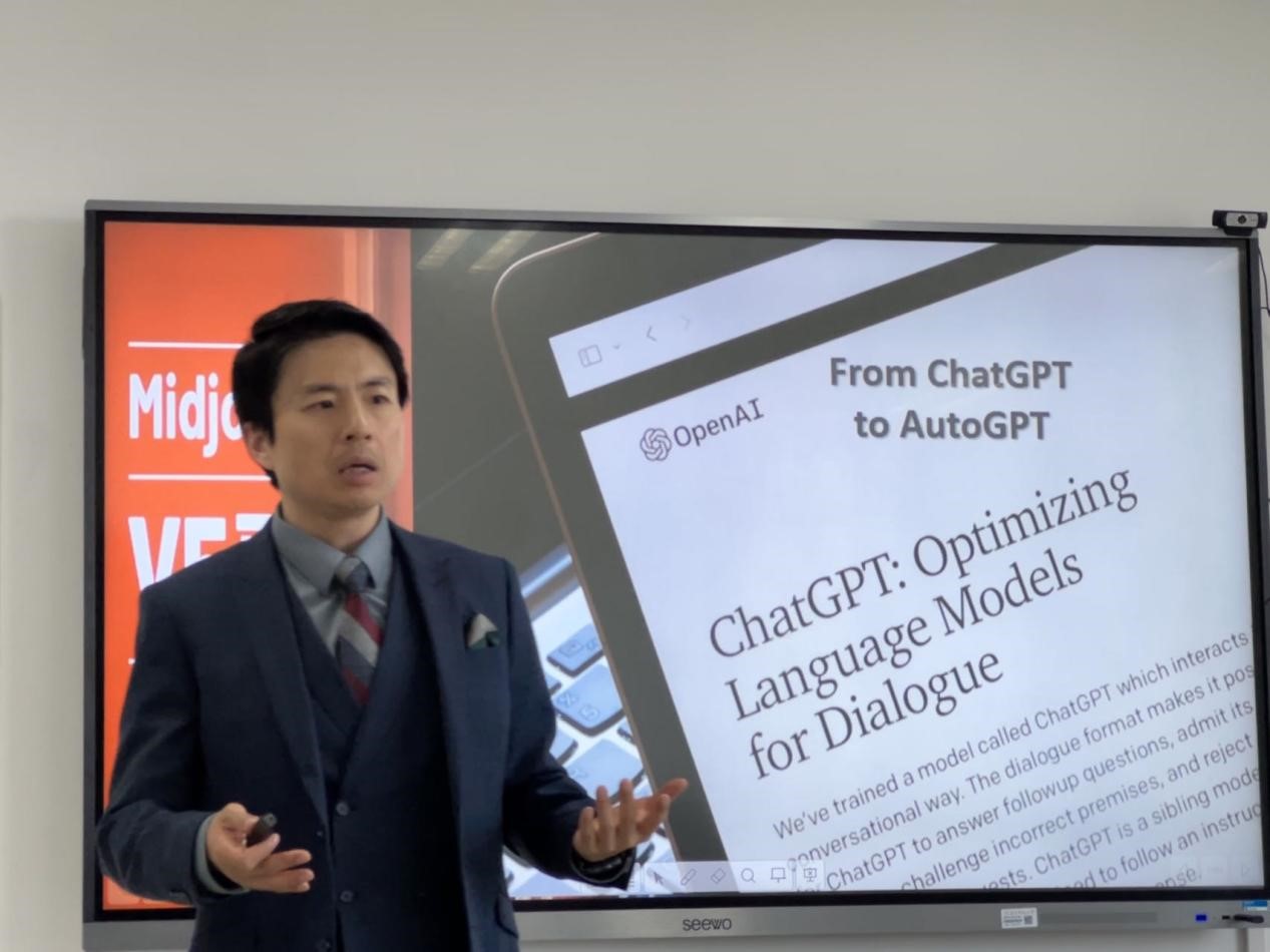 随后,吴冠军用最近火爆的ChatGPT出发,讲述ChatGPT技术升级时间不断缩短,能力也从简单对话到解析图片内容要义,达到从文本转向图片。同时,吴冠军以自己的理解重新定义了“生成AIGC”(AI generated content),他认为“AIGC”应该是“An Impossiblely Great Civilization”,其重点是文明而并非内容,甚至文明因技术而颠覆。吴冠军分享了两个利用AI所作画像的案例,一是张国荣先生的画像,二他在一次时尚峰会论坛上要求AI设计的参会服装。“人工智能十几秒就能设计出你根本就没有设想的角度,而且它的创意会让你充满兴趣。”以此,吴冠军提出“面向奇点的政治学”,AIGC转向AIGW(AI Generating World)在他的书《陷入奇点》中,他提出人类正在进入一个前人类完全没有任何准备的世界。他从柏拉图的洞穴理论出发,回到此前所讲的电影“矩阵人”,指出我们所生活环境会让我们认为这是唯一的现实,在这个意义上说,我们永远是生活在“柏拉图洞穴”里面的个体,永远只能和彼此交流。如何去定义哪一个世界是真实的世界?“只要你发现你在这个世界越是有地位/重要,那么越增加了你在的这个世界是假的可能性。”