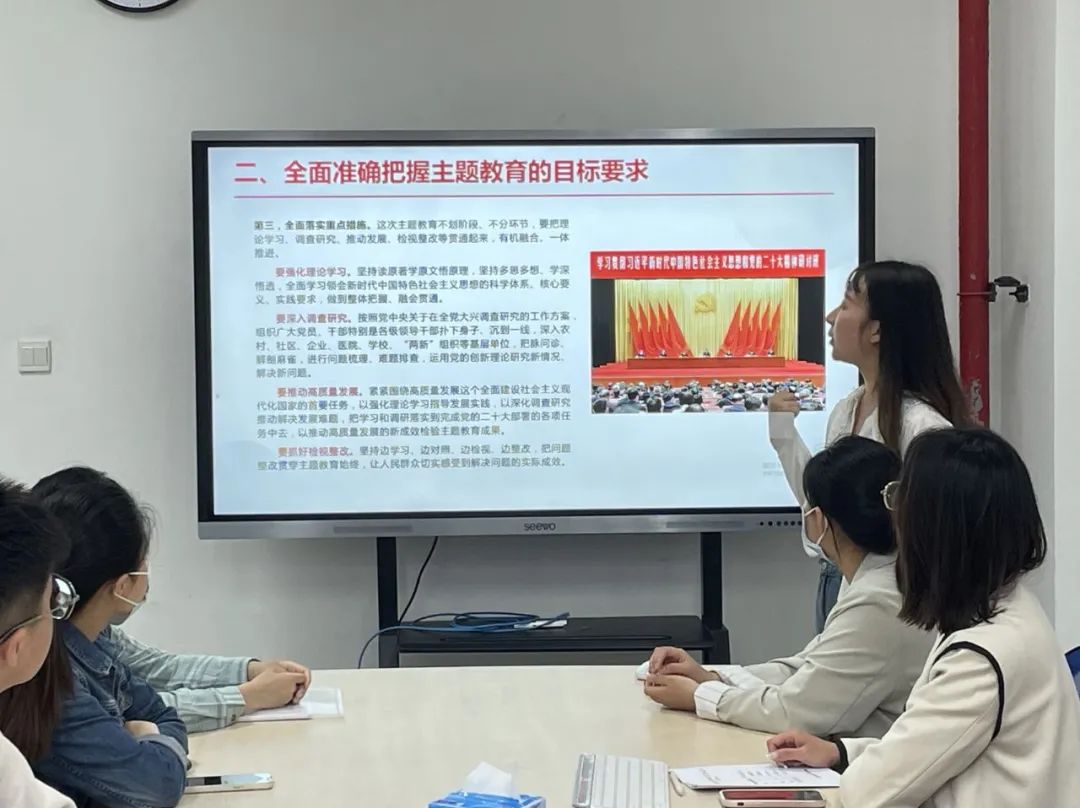 会上,党支部书记张子茜对习近平新时代中国特色社会主义思想主题教育工作会议上的讲话内容进行阐述,重申本次主题教育的重大意义。从加强理论、提升修养、团结奋进、积极担当、自我革新等方面与支部党员进行分享。