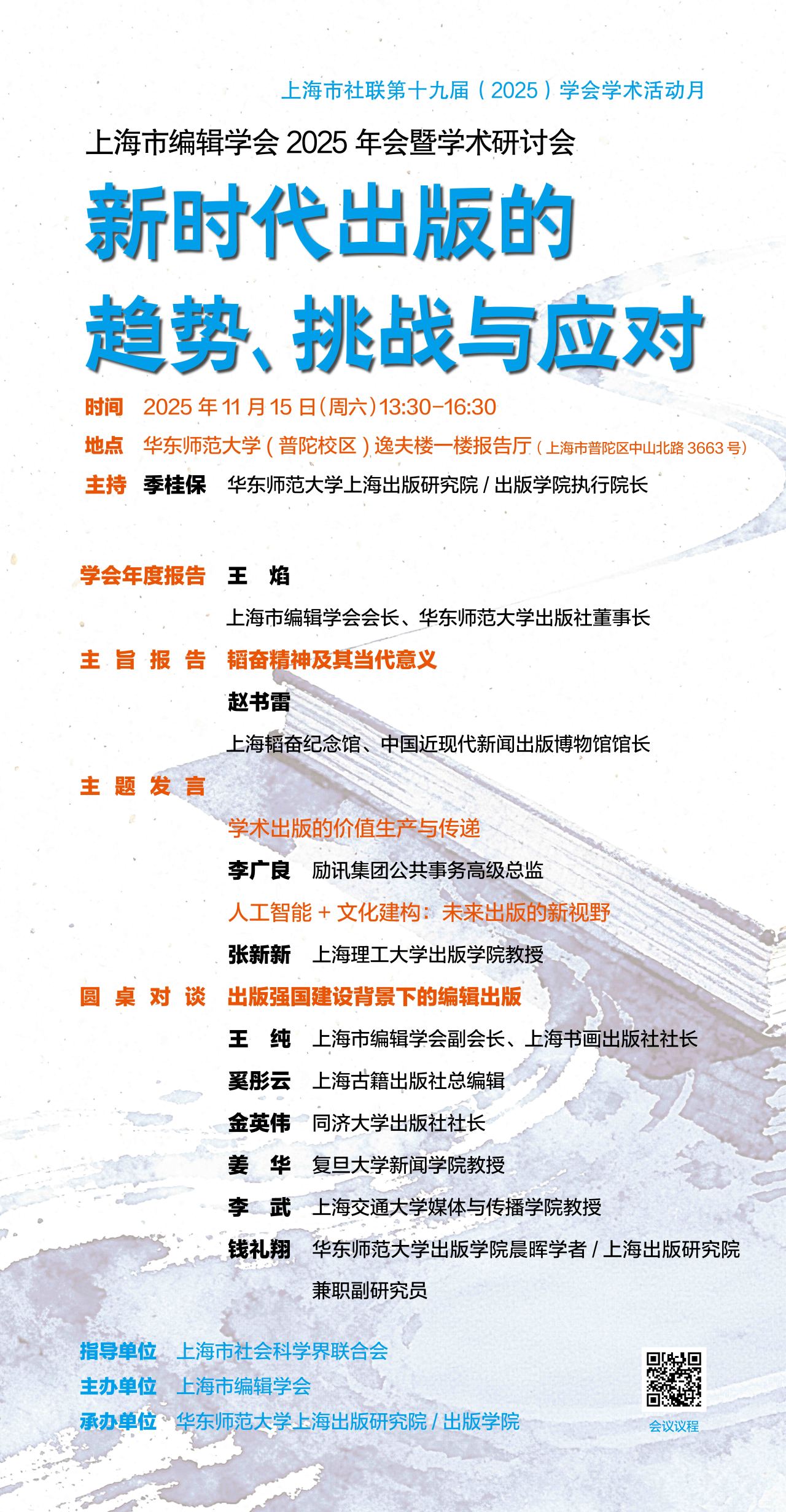 华东师范大学出版学院晨晖学者/上海出版研究院兼职副研究员