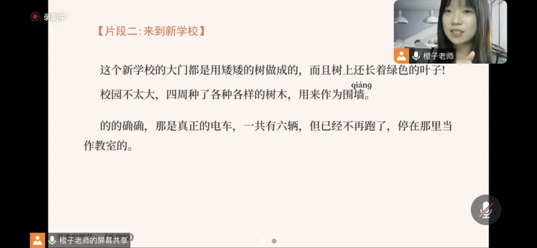在课程中,黄老师通过请学生齐声诵读以及个人朗读原文片段的方式,让学生们快速了解小豆豆的童年经历。在片段阅读过程中,黄老师设计了多个互动环节,让学生们自由表达对小豆豆故事的各种感受和见解。